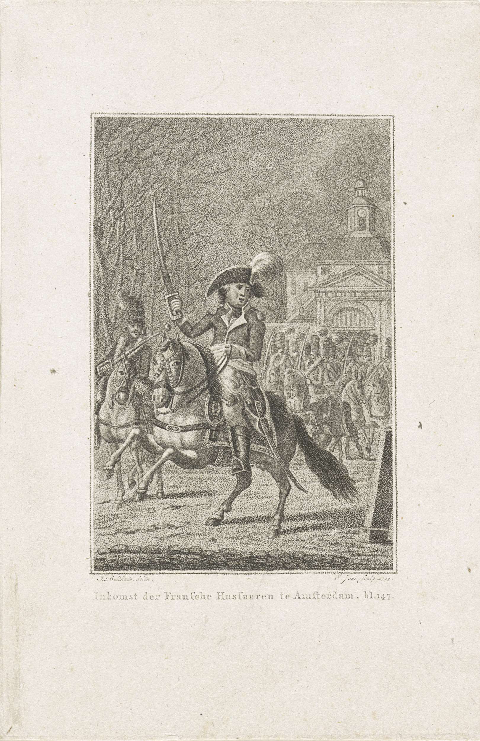 Franse huzaren trekken Amsterdam bij de Leidsepoort binnen, januari 1795.