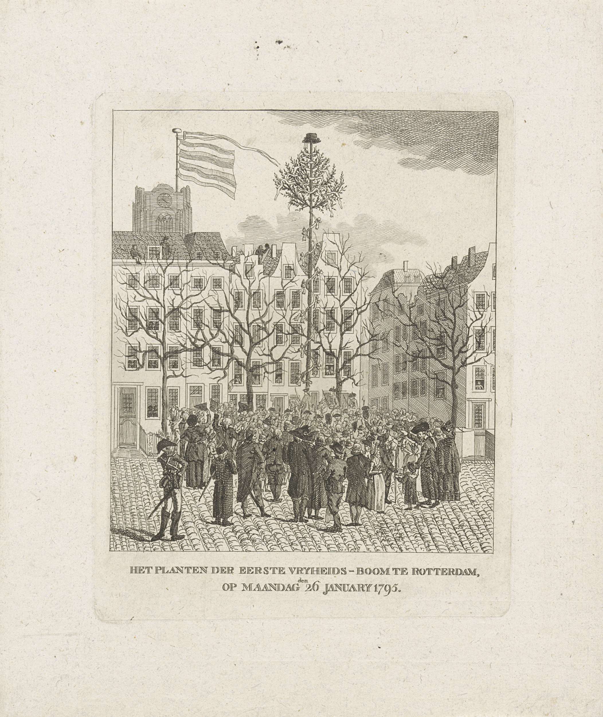 Het planten van de eerste vrijheidsboom op de Grote Markt te Rotterdam, 26 januari 1795.