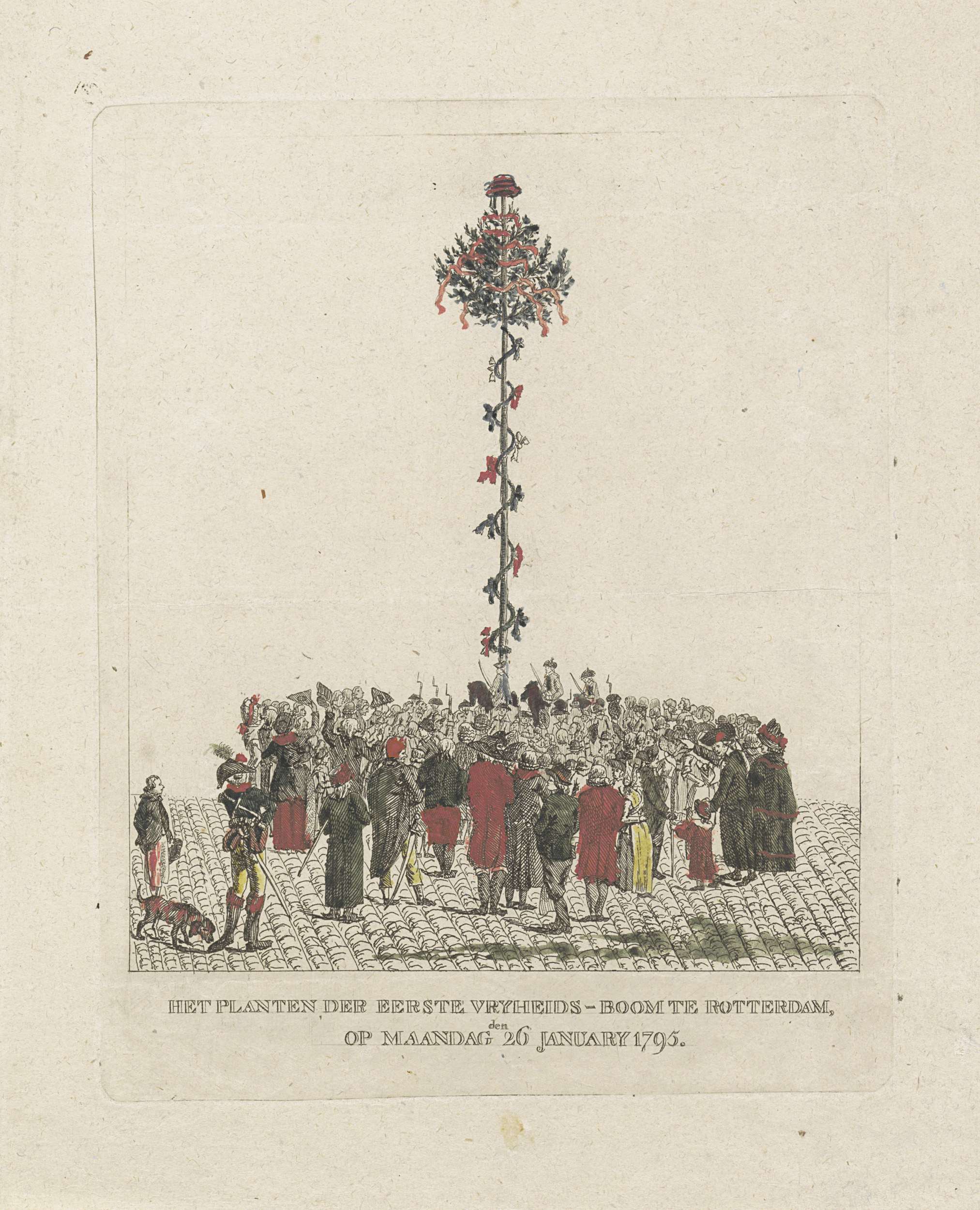 Het planten van de eerste vrijheidsboom op de Grote Markt te Rotterdam, 26 januari 1795.