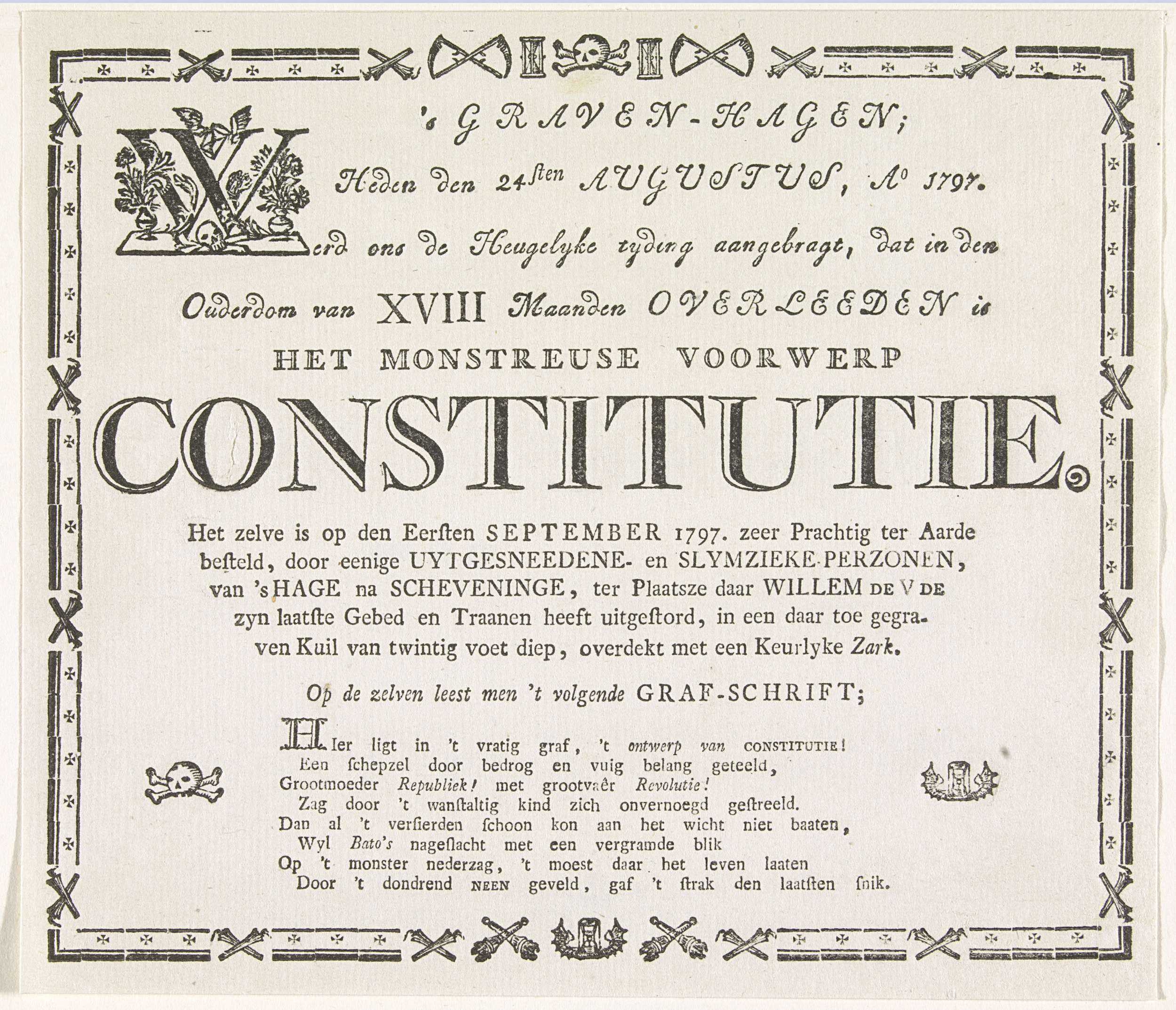 Begrafenisbriefje voor de Constitutie, 1797