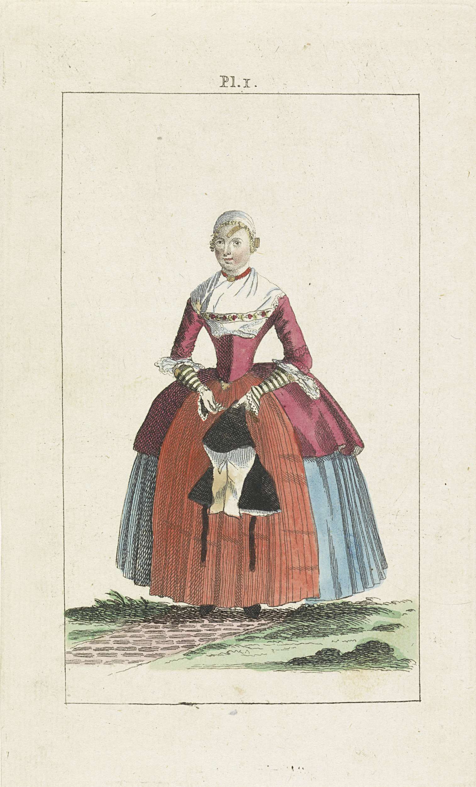 Klederdracht van een vrouw uit Friesland. Plaat I in een reeks van vier illustraties van klederdrachten in Nederland in 1792.