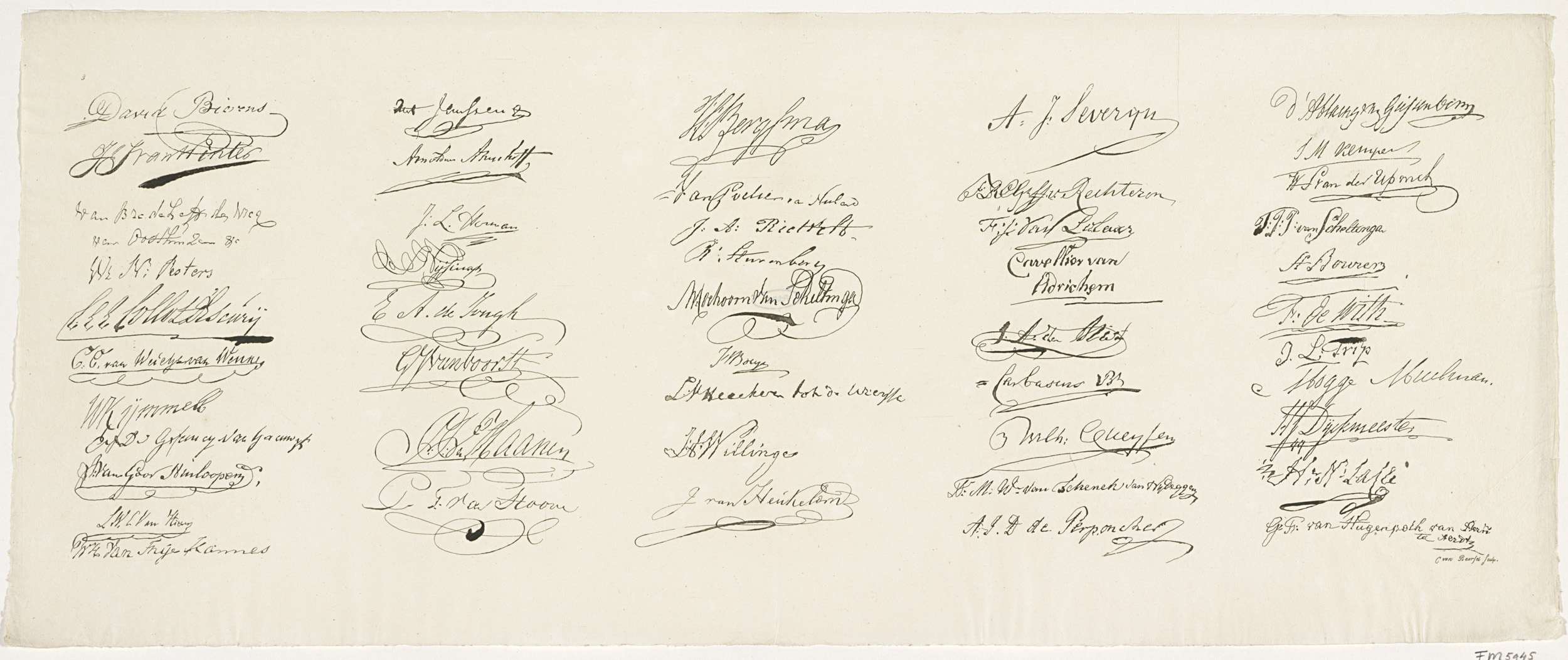 Blad nr. 3 uit de serie van negen bladen met in facsimile de handtekeningen van de leden van de Vergadering der Aanzienlijken bijeen ter onderhandeling over de nieuwe grondwet, te Amsterdam op 29 maart 1814.