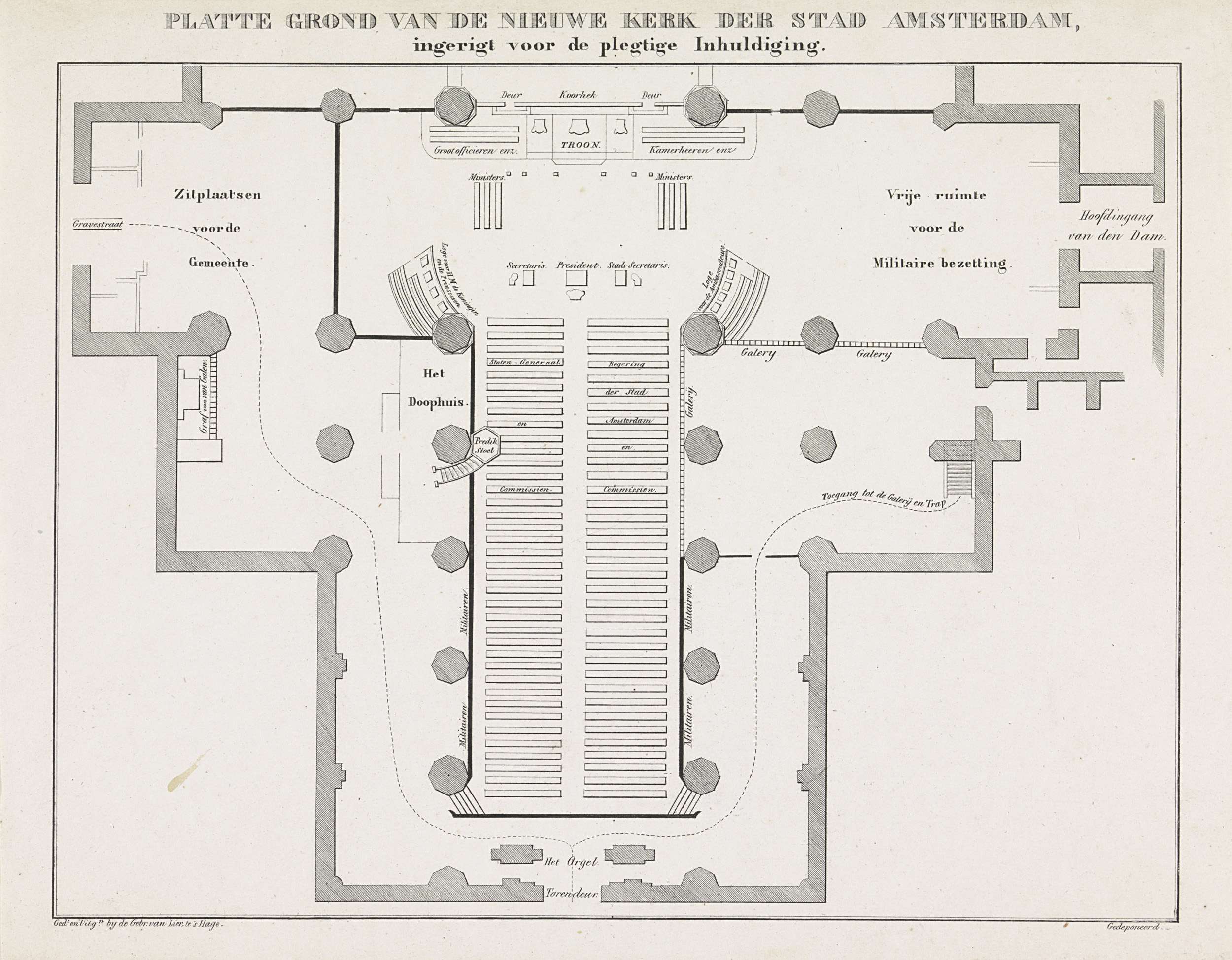 Plattegrond van de Nieuwe Kerk bij de inhuldiging van koning Willem II, 1840
