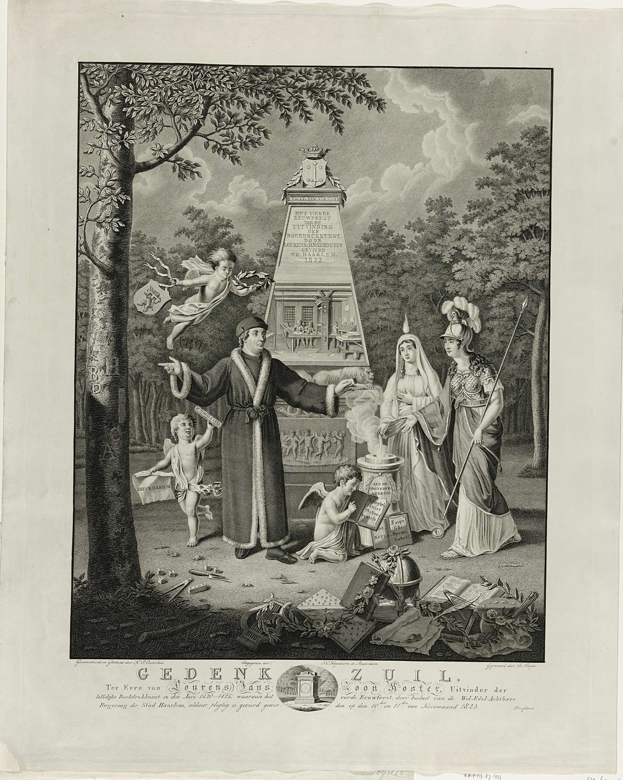 Gedenkzuil bij 400-jarig jubileum uitvinding boekdrukkunst door Coster, 1823