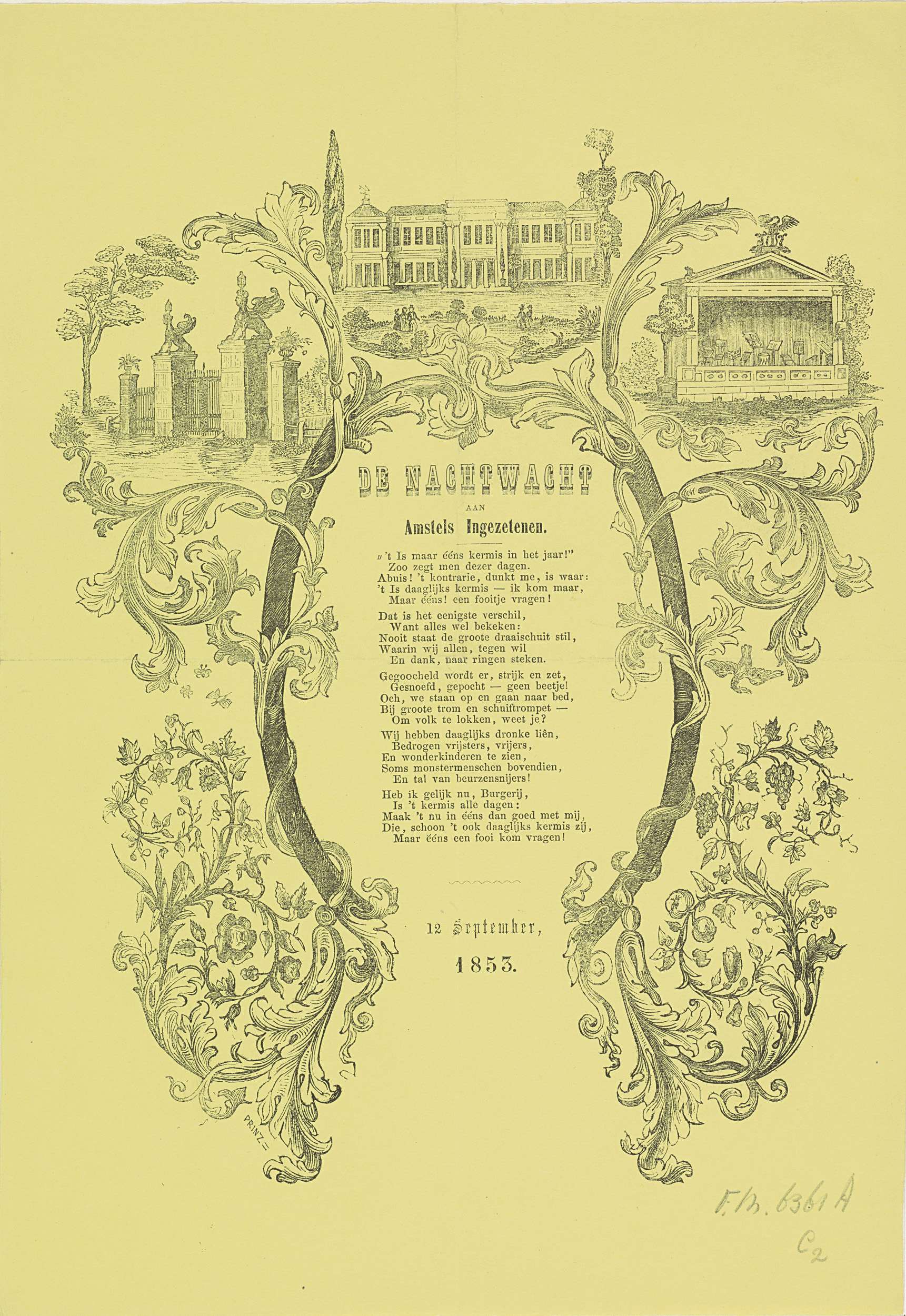 Kermisprent van de Amsterdamse nachtwacht voor het jaar 1853