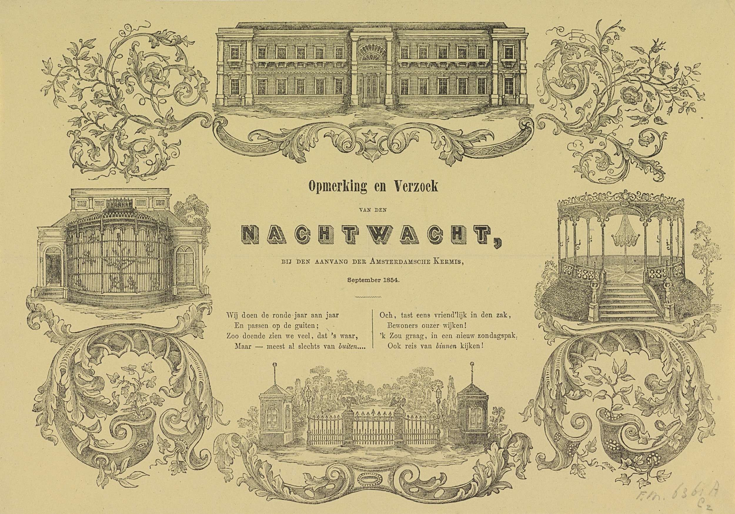 Kermisprent van de Amsterdamse nachtwacht voor het jaar 1854