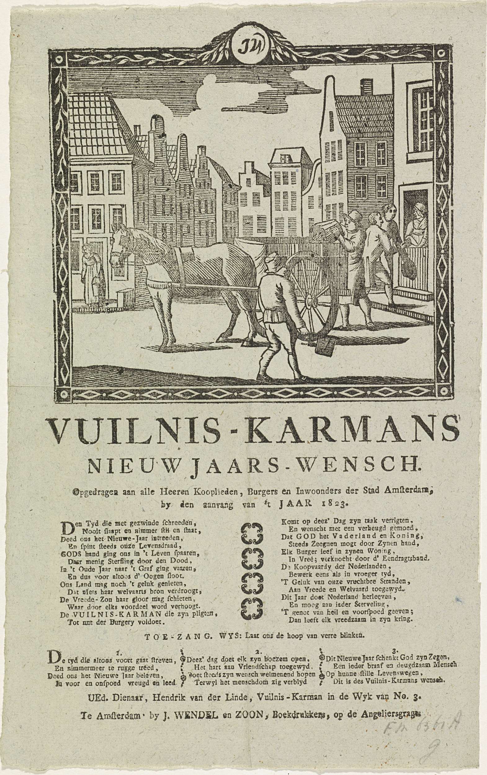 Nieuwjaarswens van de vuilnismannen van Amsterdam voor het jaar 1823