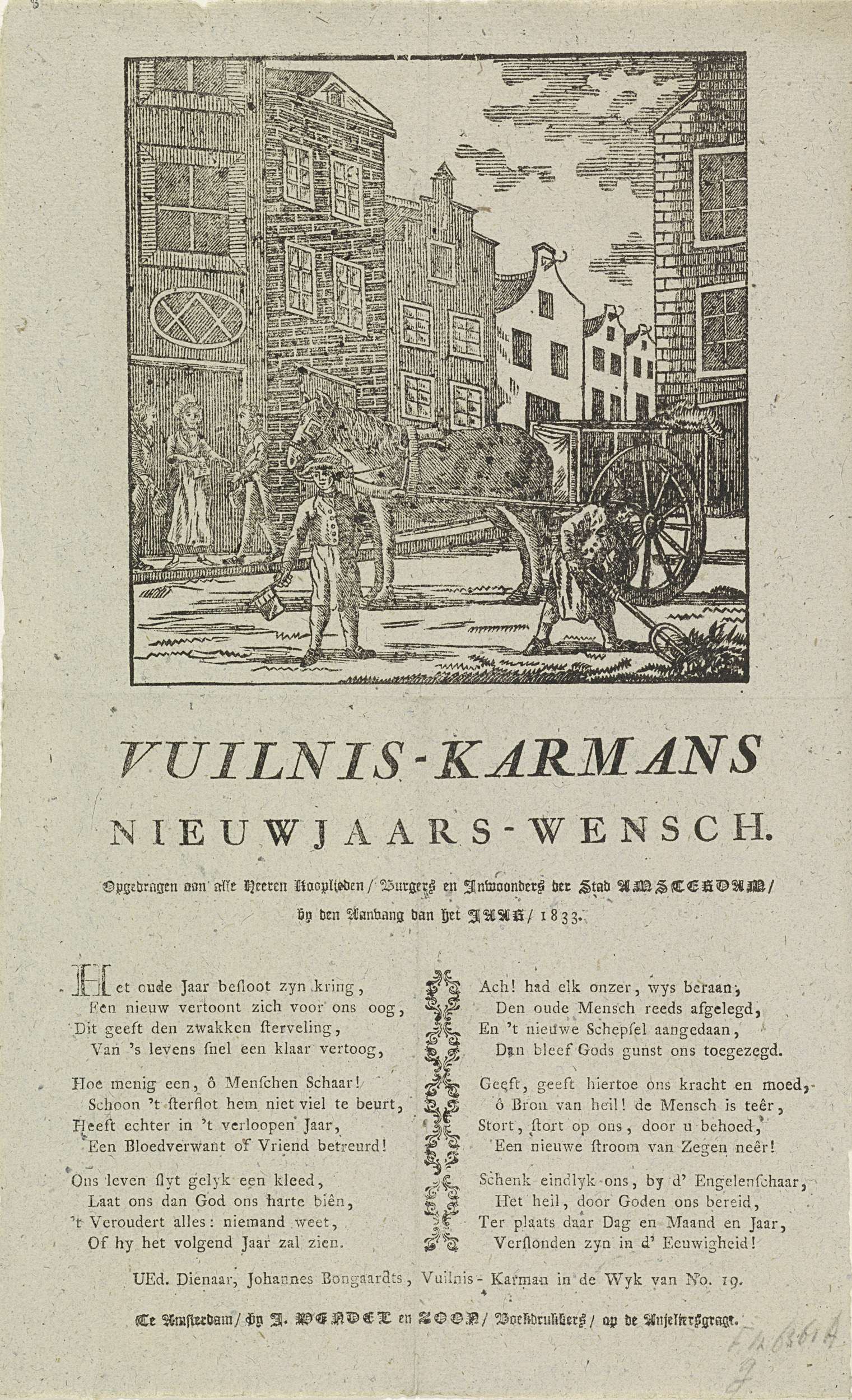 Nieuwjaarswens van de vuilnismannen van Amsterdam voor het jaar 1833