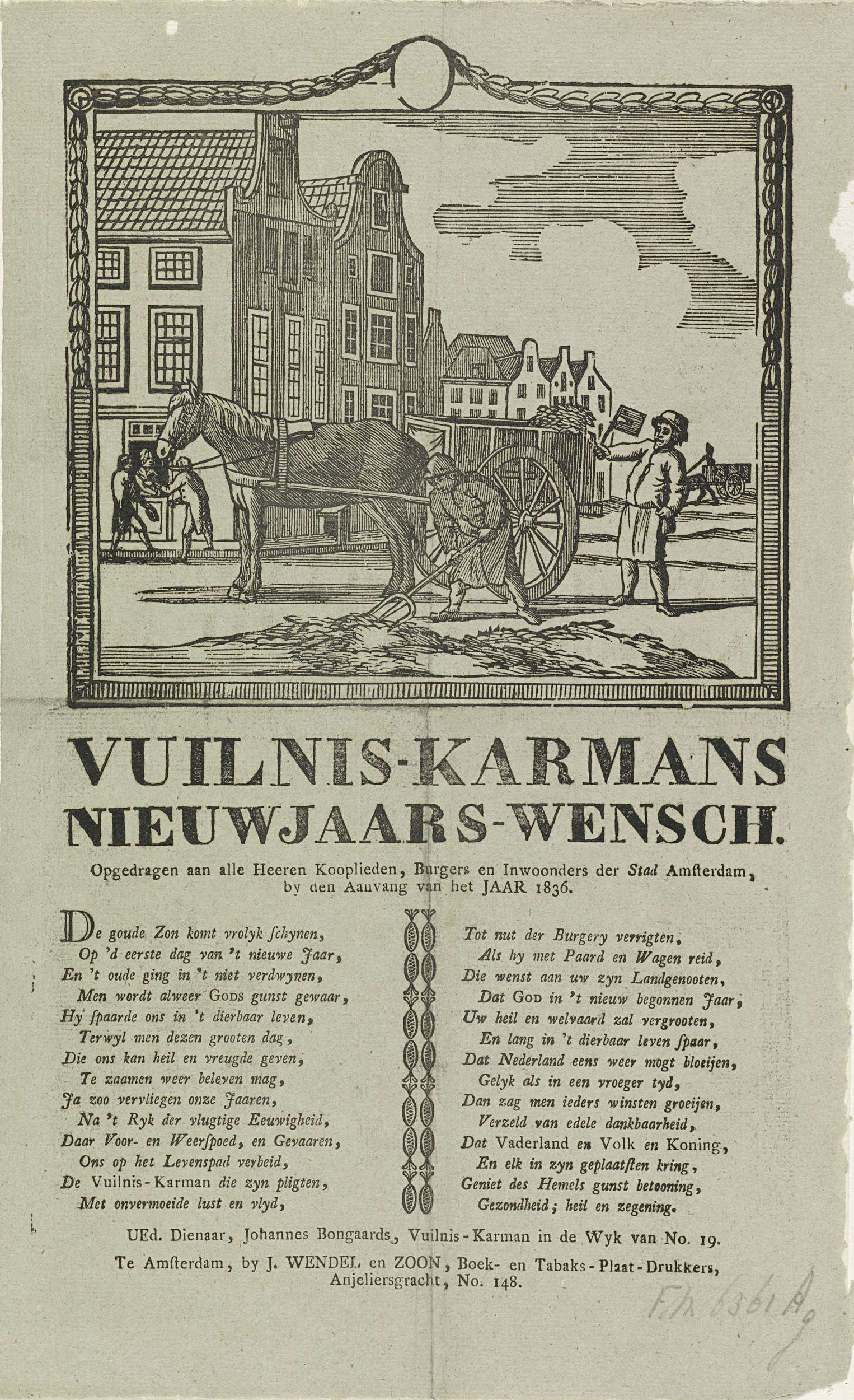 Nieuwjaarswens van de vuilnismannen van Amsterdam voor het jaar 1836