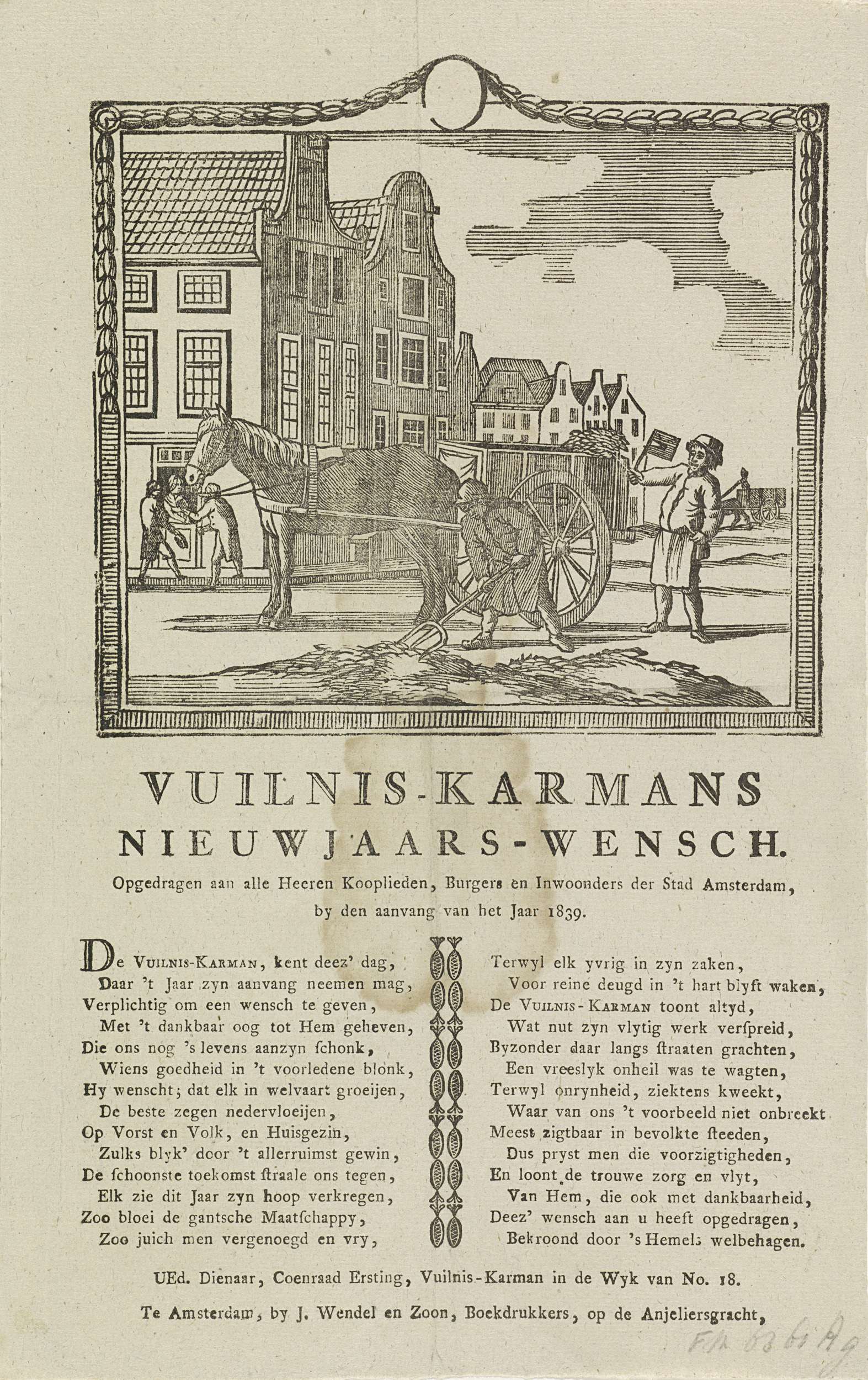 Nieuwjaarswens van de vuilnismannen van Amsterdam voor het jaar 1839