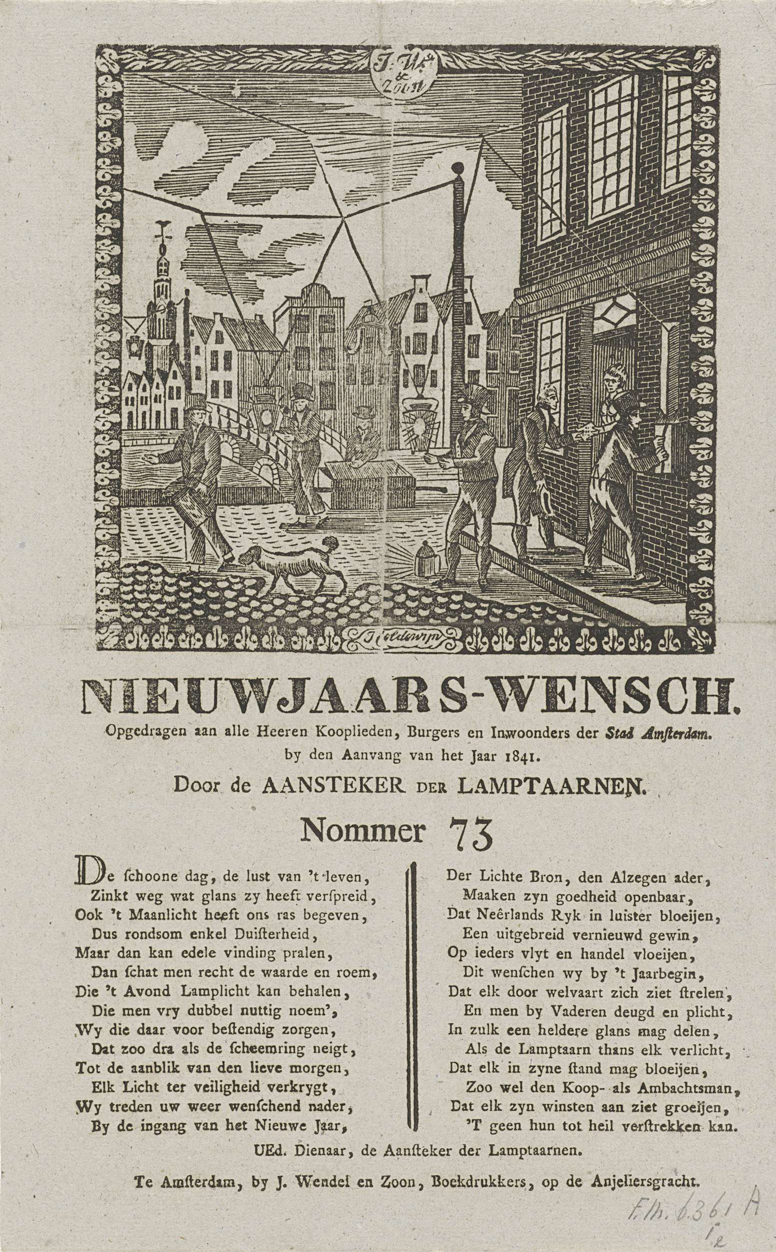 Nieuwjaarswens van de lantaarnopstekers van Amsterdam voor het jaar 1841