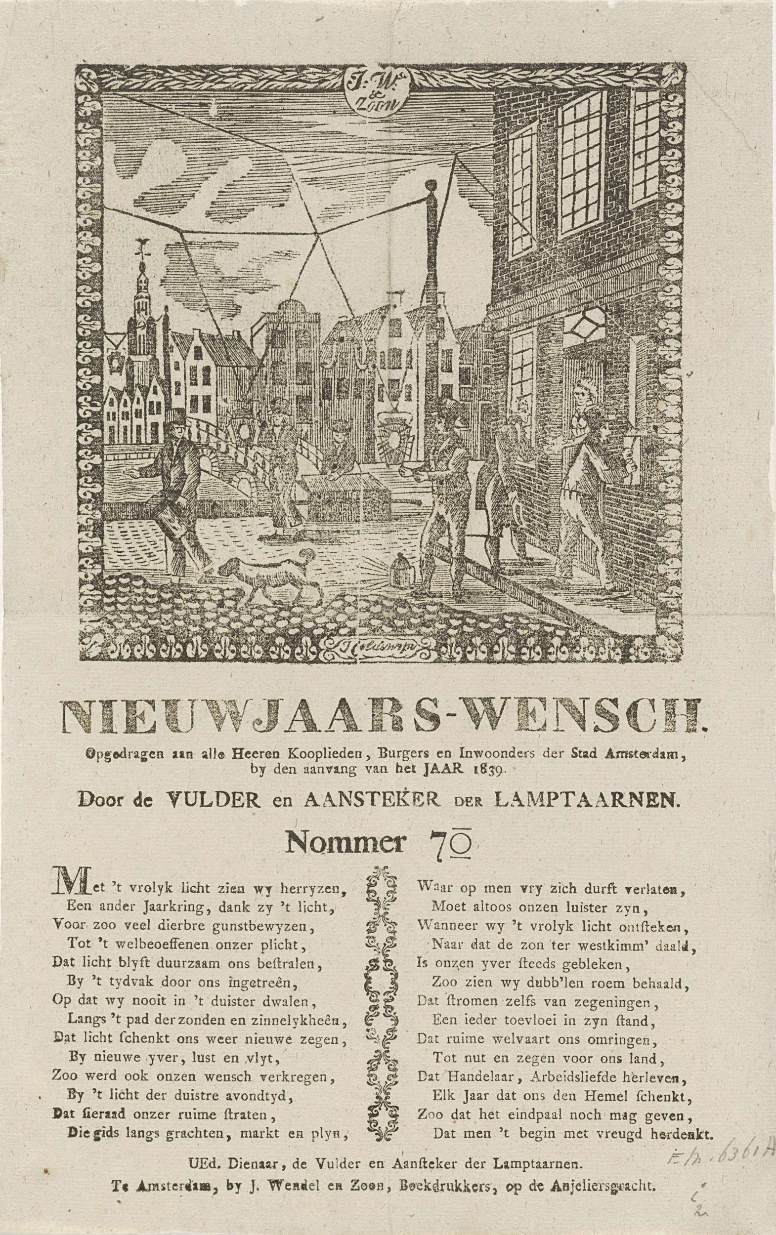 Nieuwjaarswens van de lantaarnopstekers van Amsterdam voor het jaar 1839