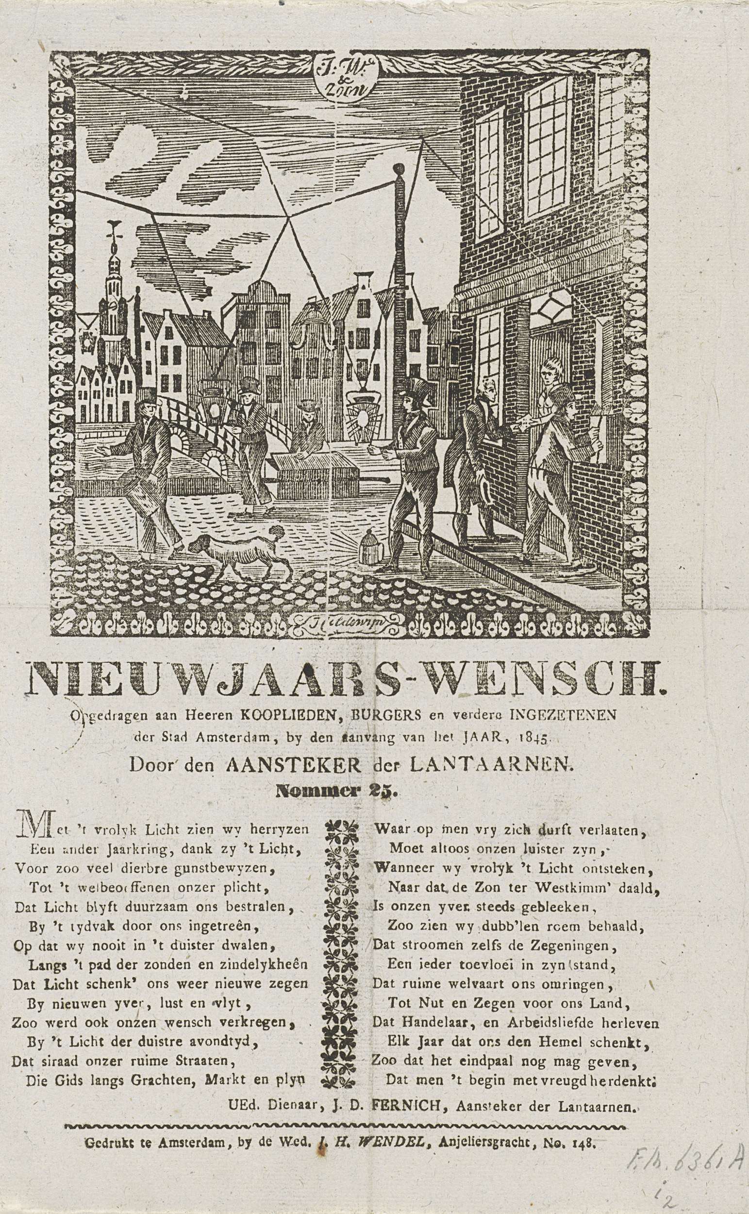 Nieuwjaarswens van de lantaarnopstekers van Amsterdam voor het jaar 1845