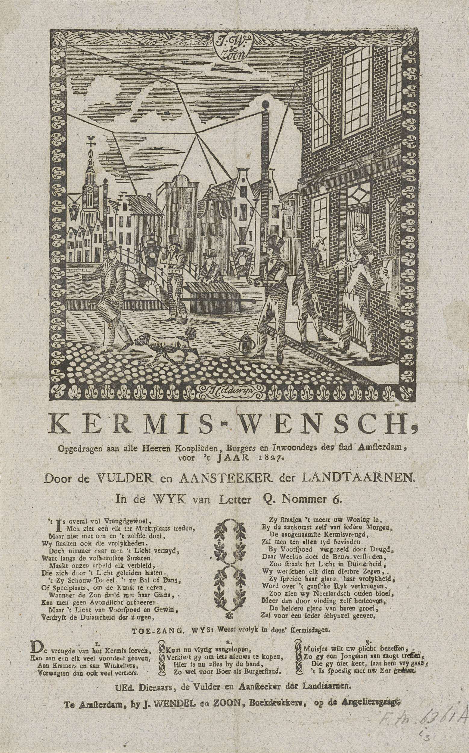 Kermisprent van de lantaarnopstekers van Amsterdam voor het jaar 1827