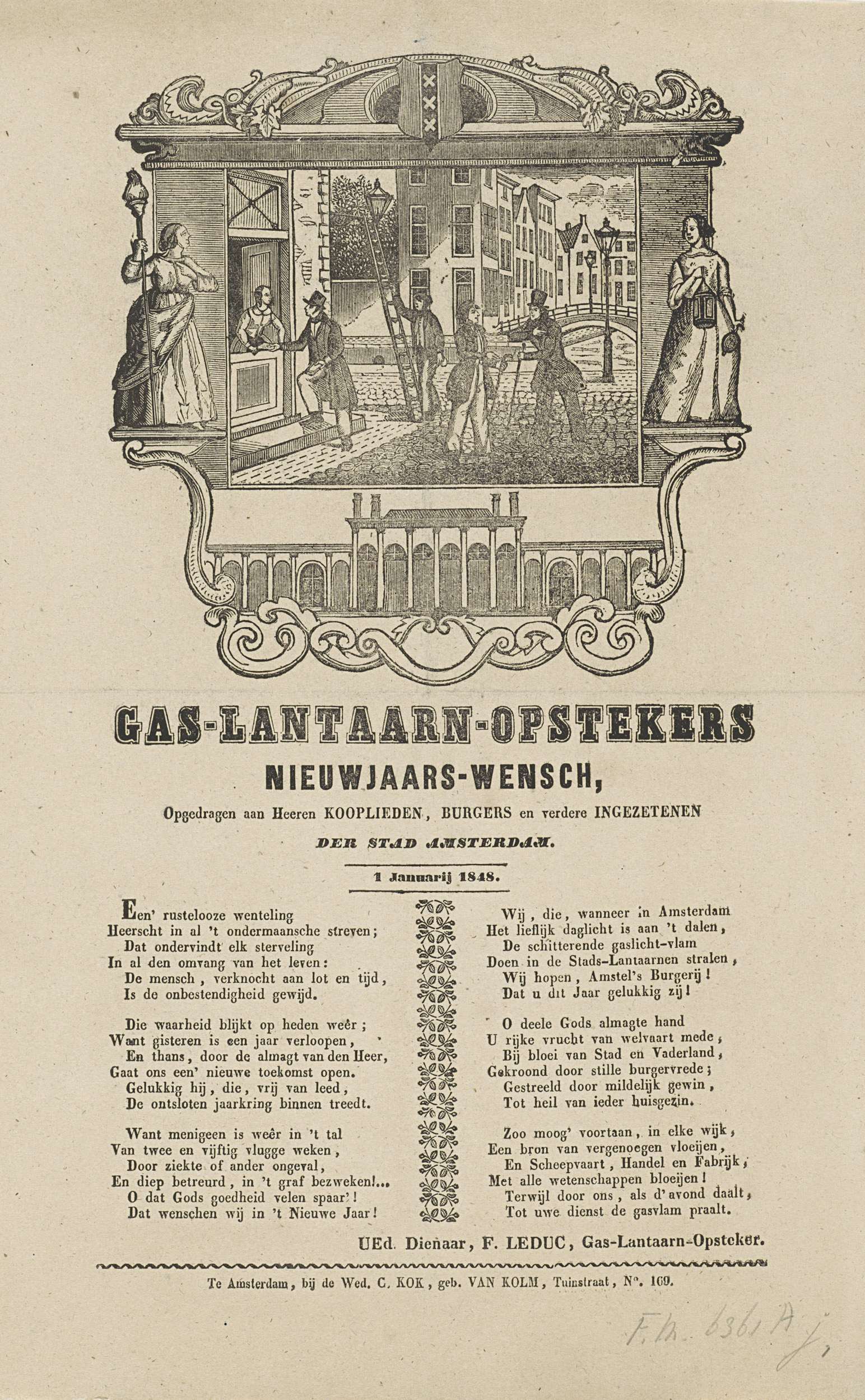 Nieuwjaarswens van de gaslantaarnopstekers van Amsterdam voor het jaar 1848
