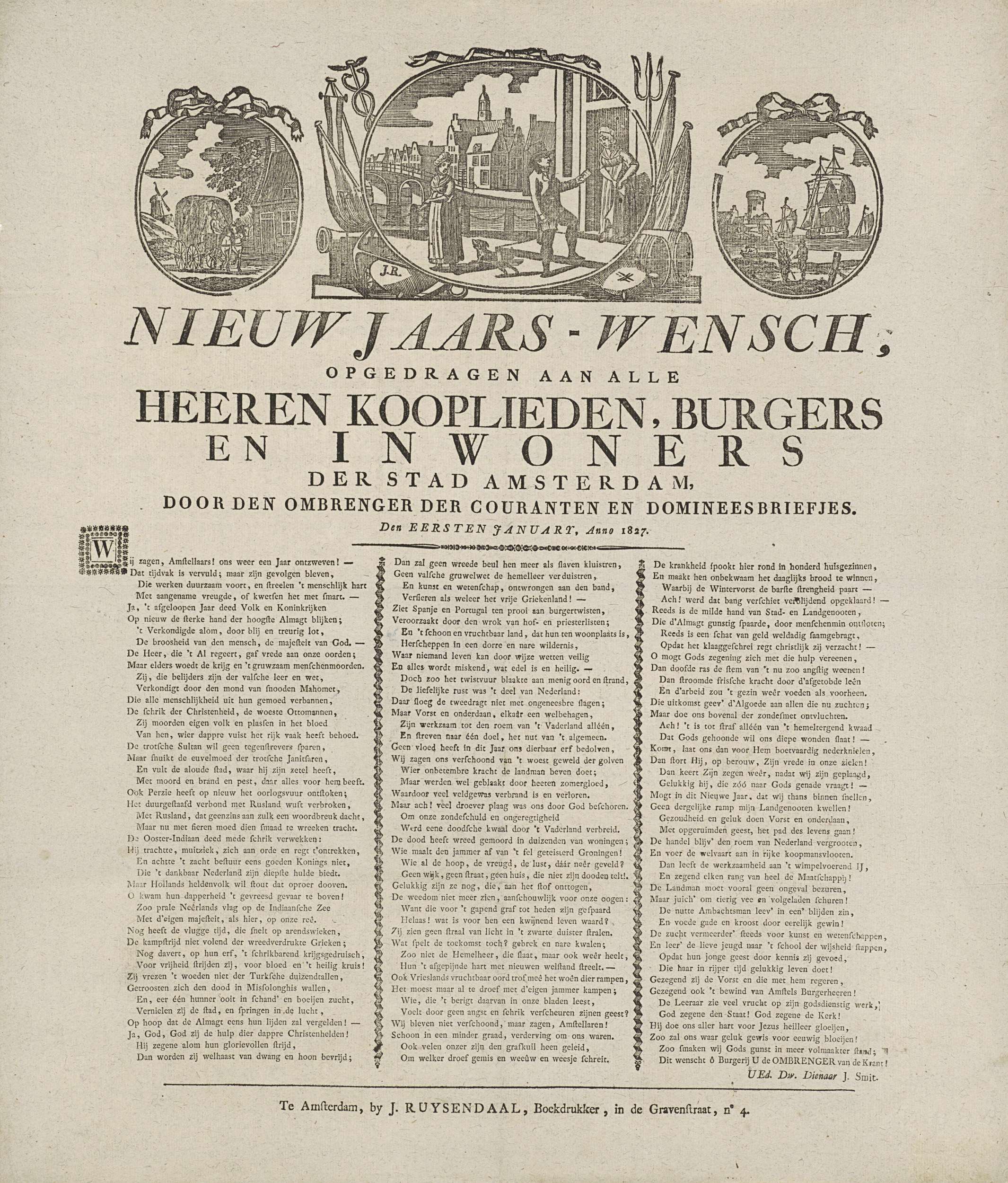 Nieuwjaarswens van de Amsterdamse courantombrengers voor het jaar 1827