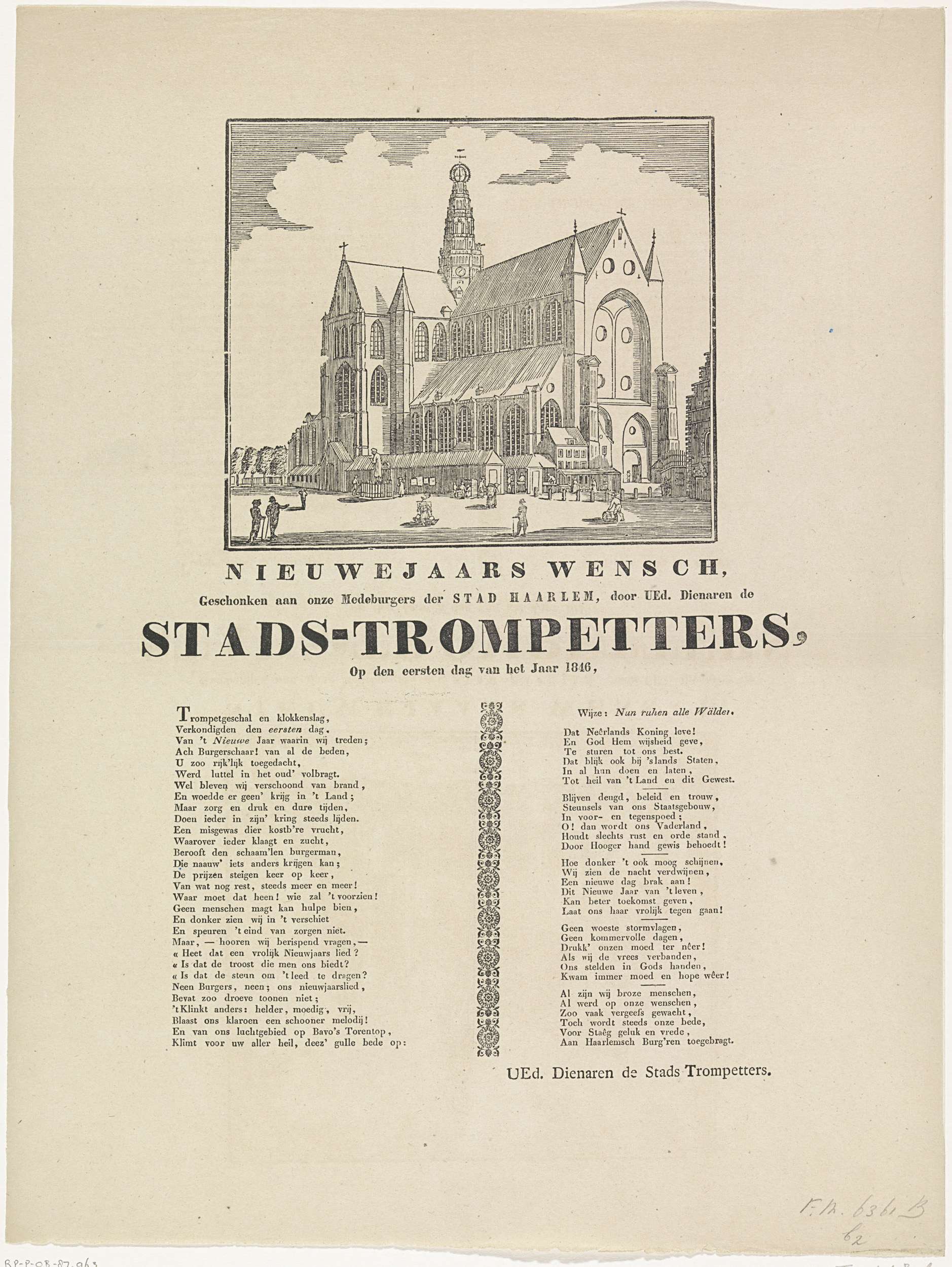 Nieuwjaarswens van de stadstrompetters van Haarlem voor het jaar 1846