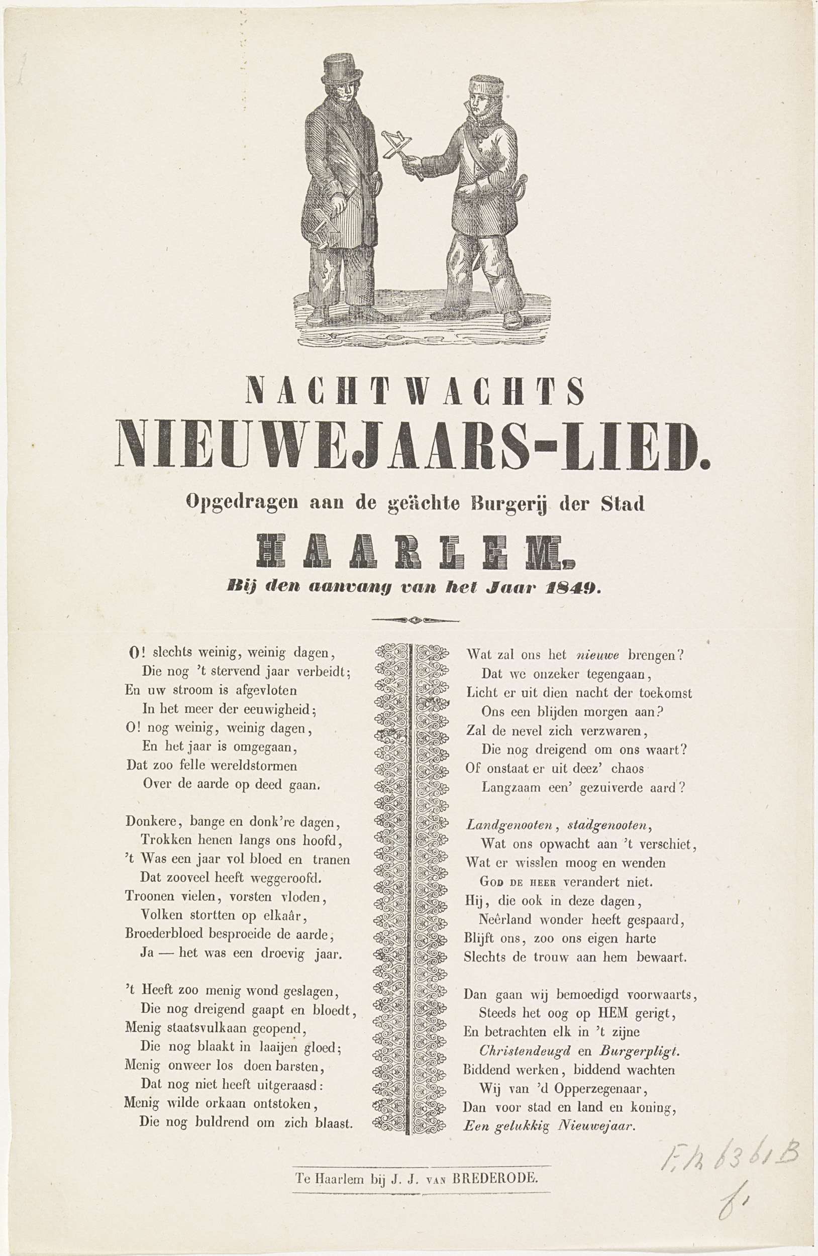 Nieuwjaarswens van de nachtwacht van Haarlem voor het jaar 1849