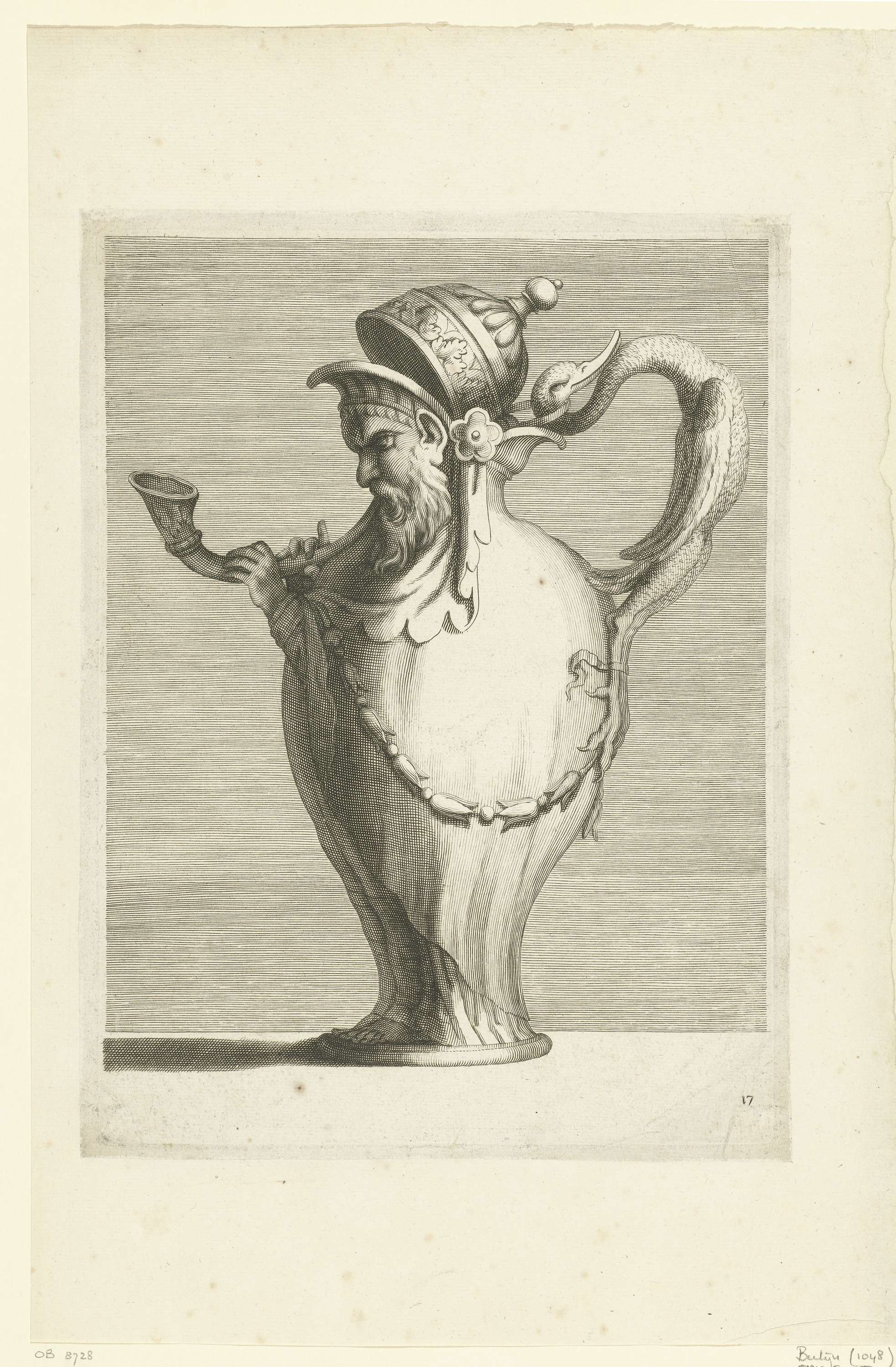Het handvat rechts heeft de vorm van een zwaan. Blad 17 uit serie van 24 bladen, genummerd: 1-21, 23-25. Deze serie werd opgevolgd door de serie Second Livre de Vases, bestaande uit 25 bladen, waarin de nummering doorloopt.
