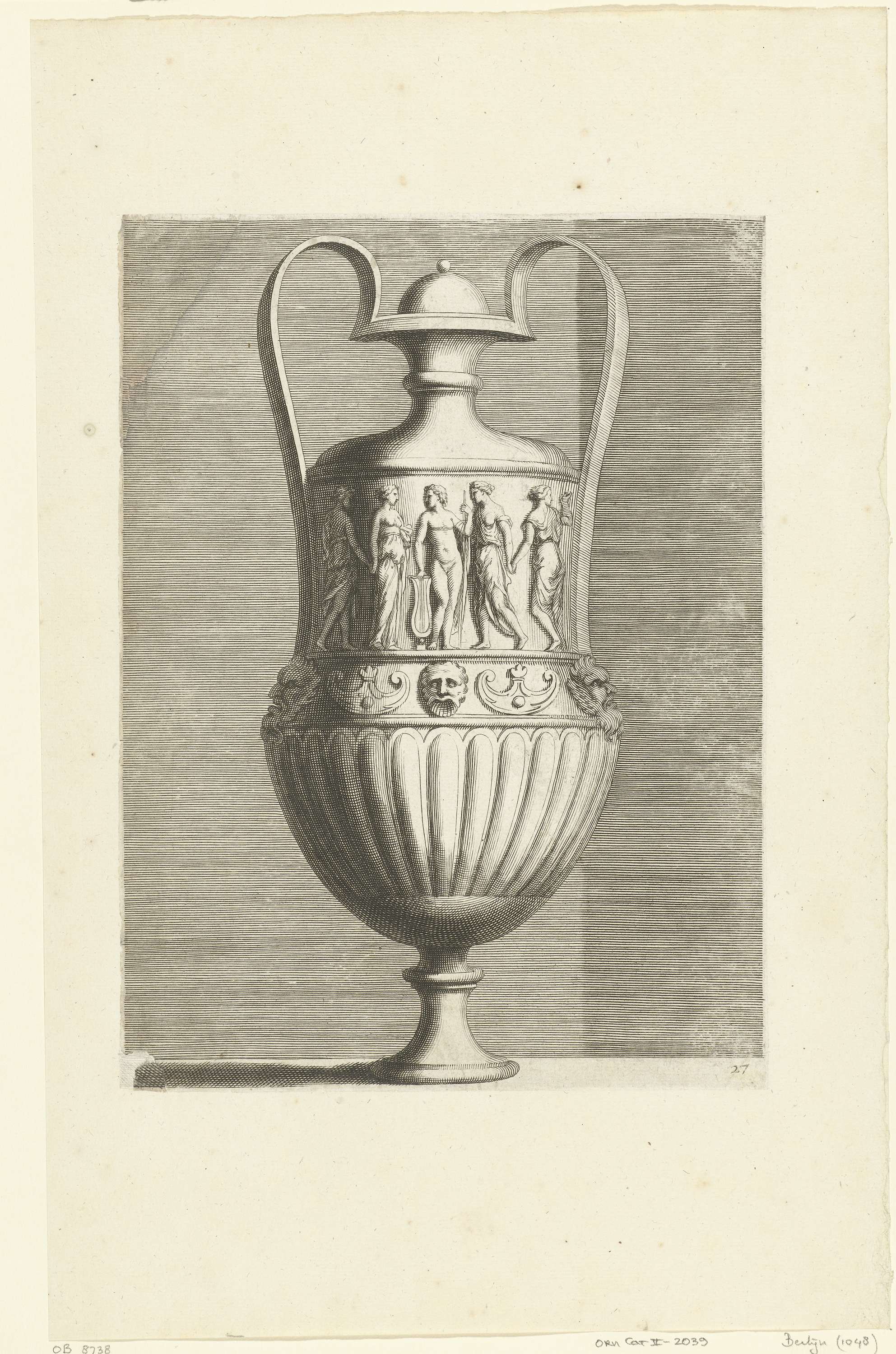 Bovenaan staat een fries met Apollo geflankeerd door de Muzen. Blad 27 uit serie van 25 bladen, genummerd: II (voorheen 26), 27-50.