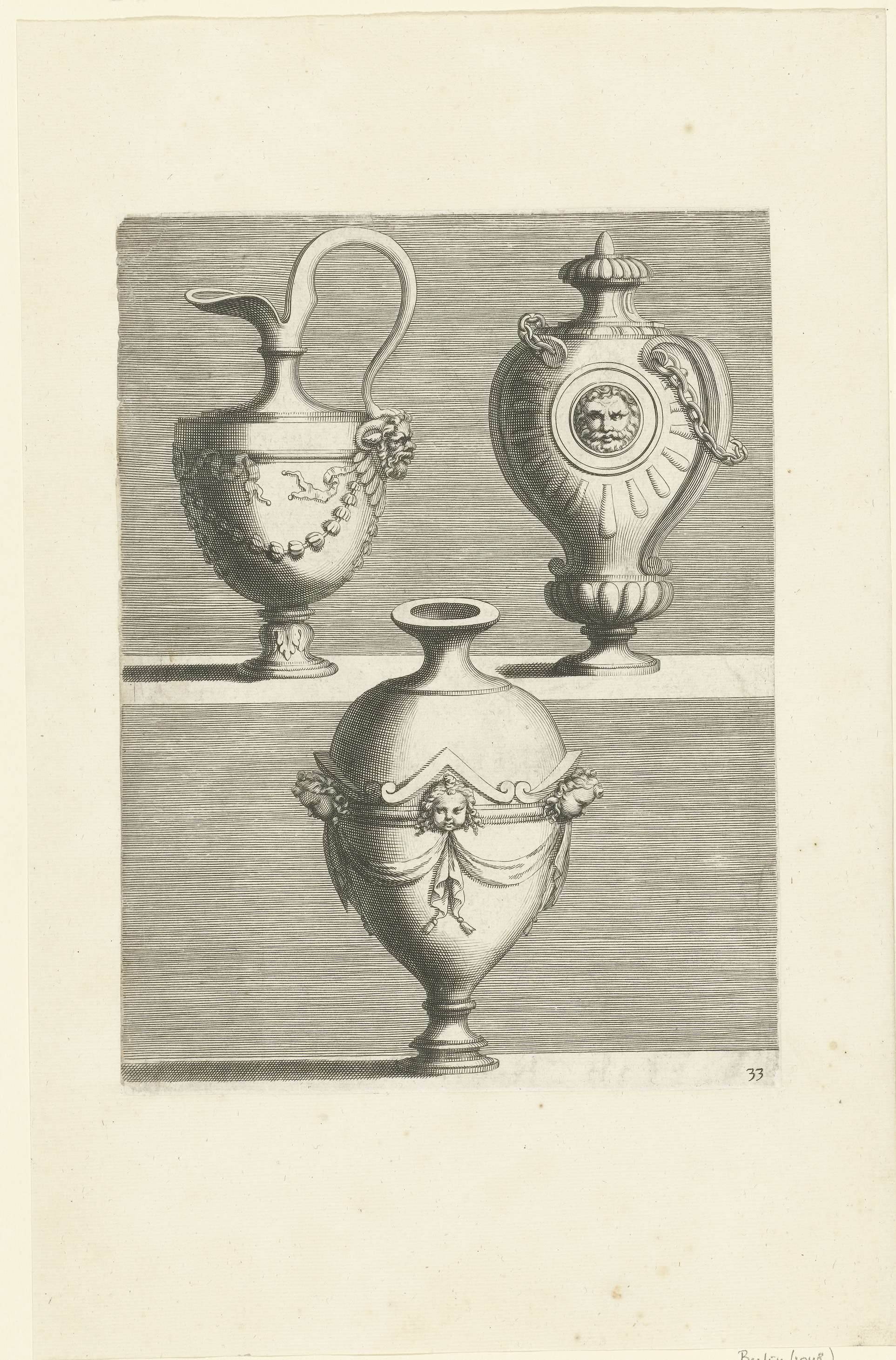 De vaas onderaan is gedecoreerd met drie kinderhoofden. Blad 33 uit serie van 25 bladen, genummerd: II (voorheen 26), 27-50.