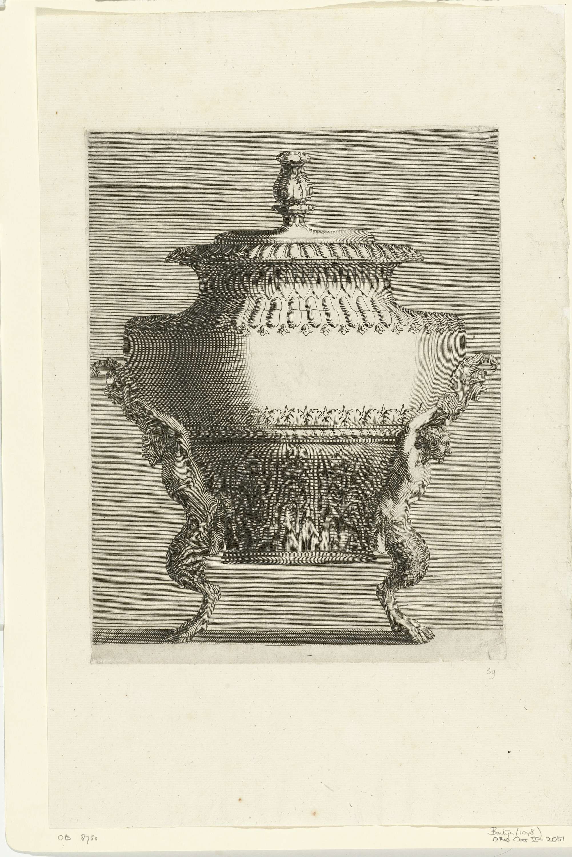 Vaas met deksel gedragen door twee saters