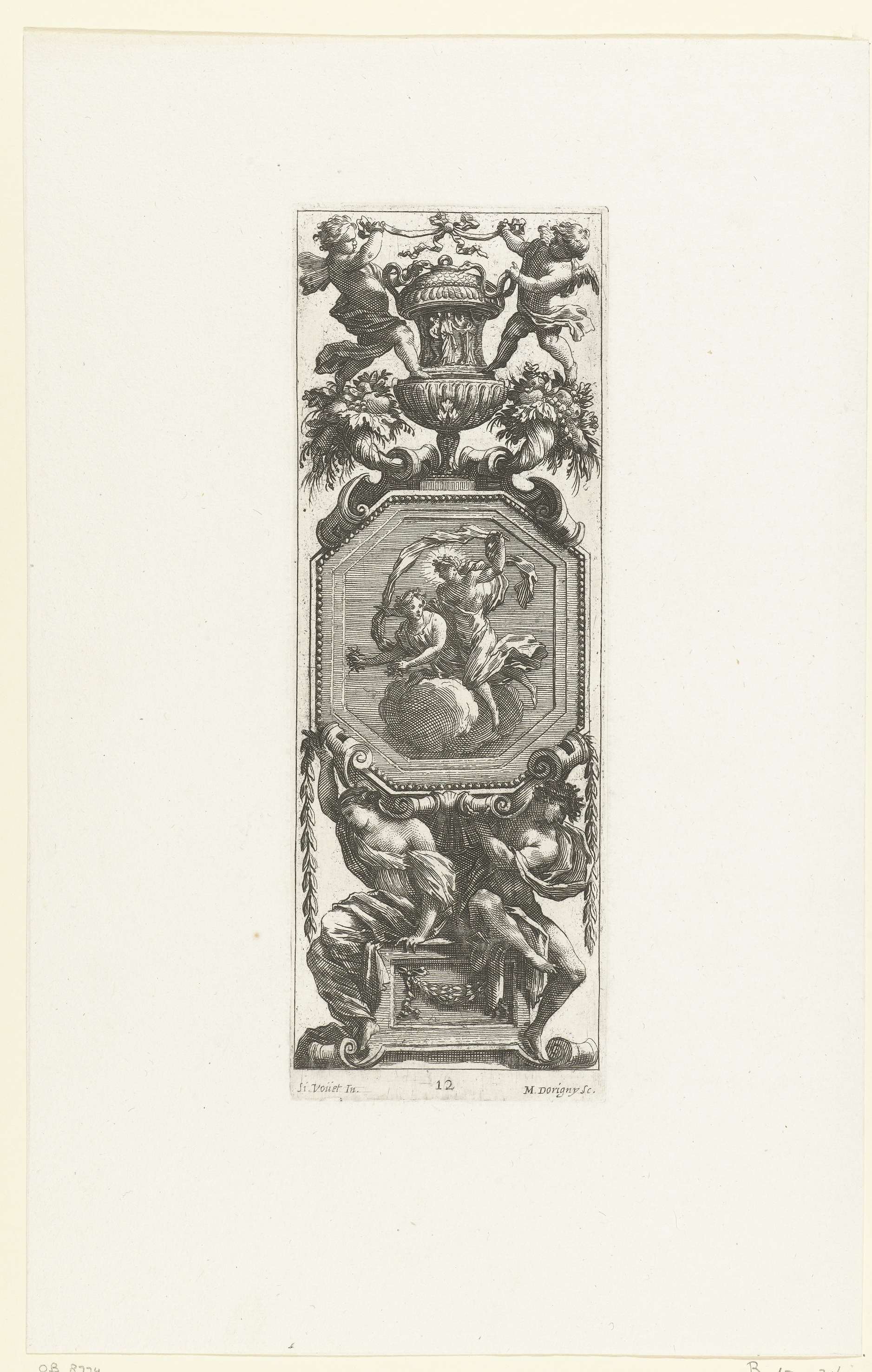Muurpaneel met man en vrouw onder achthoekige lijst