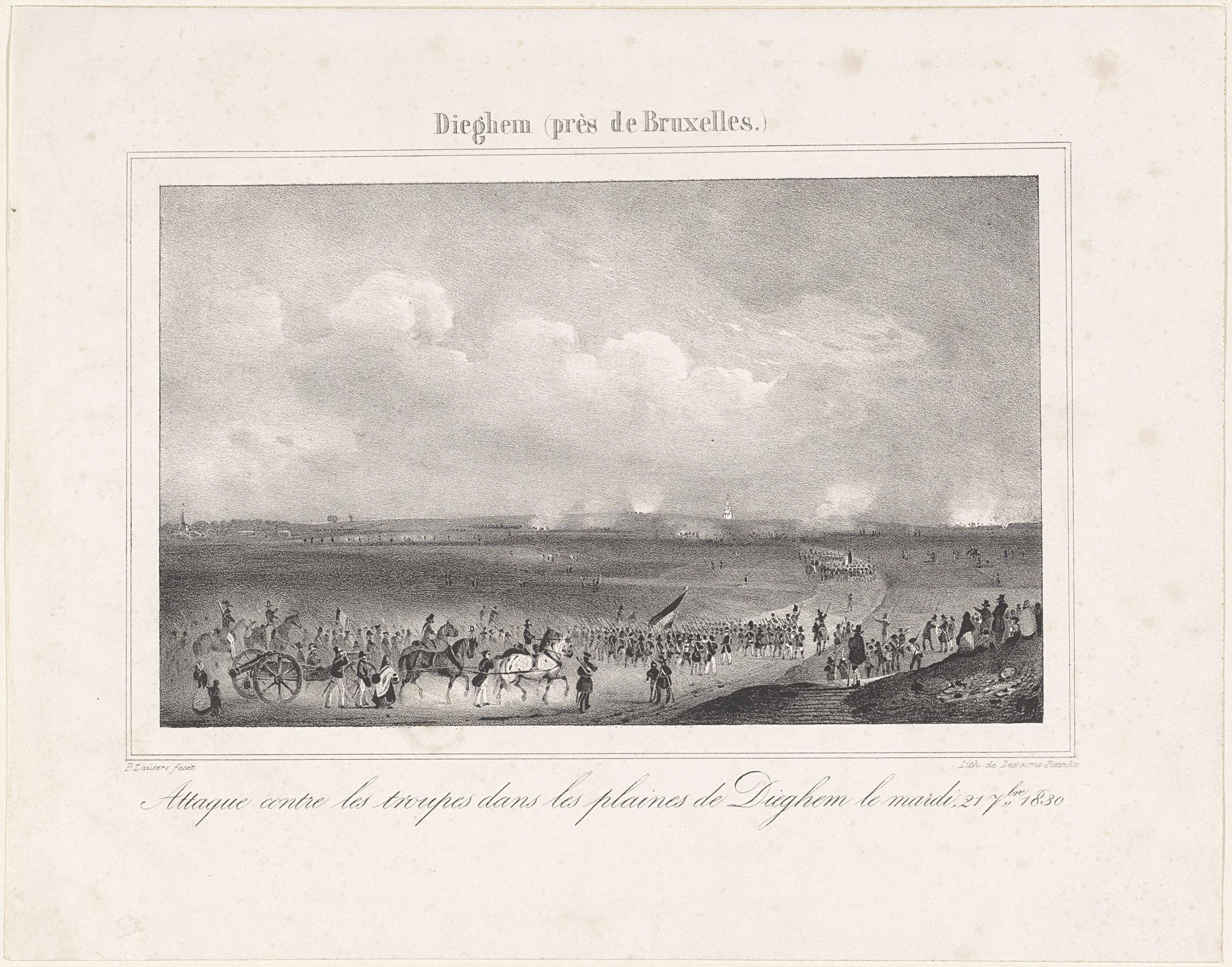 Gevechten tussen Nederlandse en Belgische troepen bij Diegem, 21 september 1830. Onderdeel van een recueil met platen over de gebeurtenissen tijdens de Belgische Revolutie in Brussel, Antwerpen en andere steden in de periode 25 augustus 1830 tot 27 maart 1831.