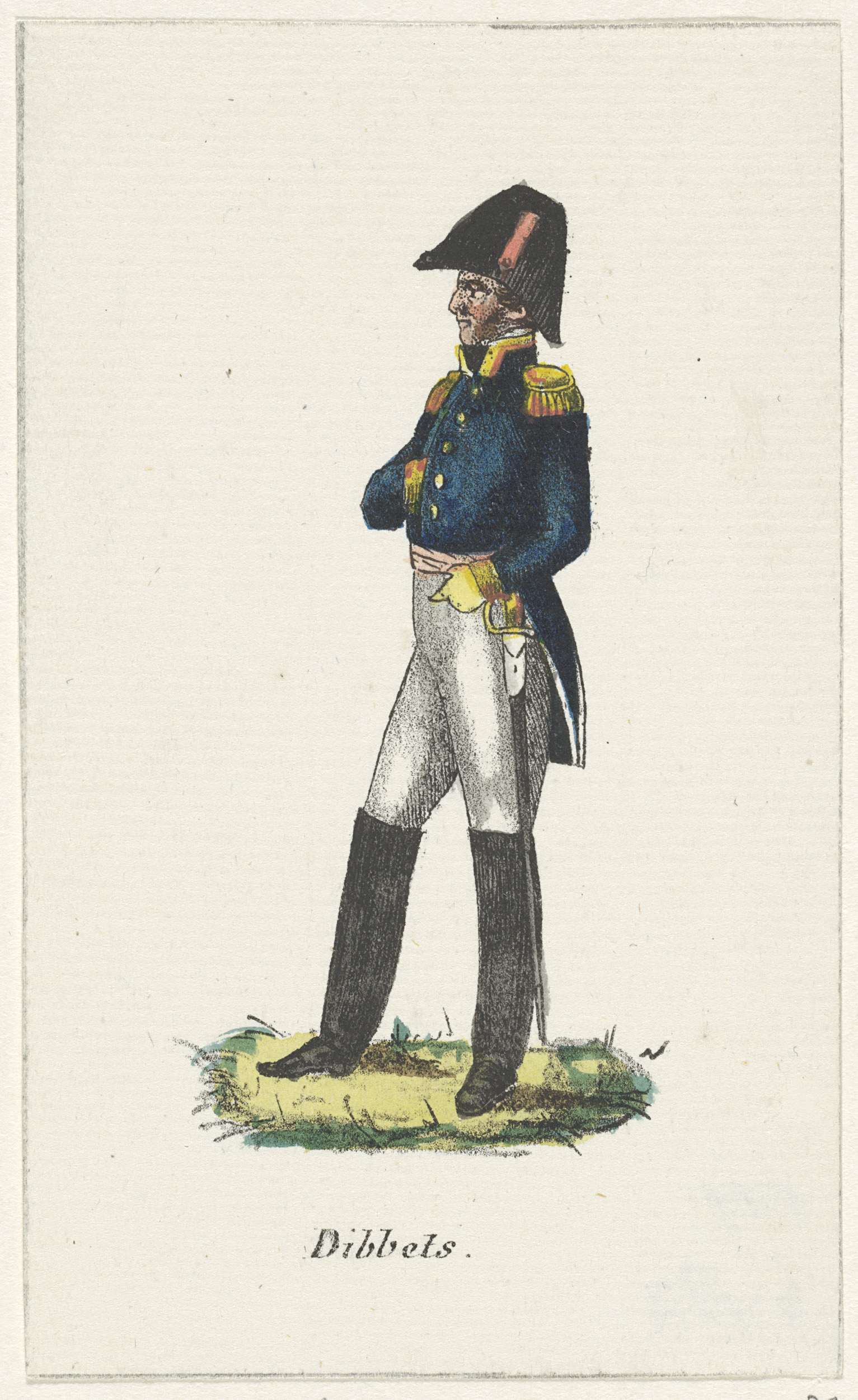 Uniform van luitenant-generaal der infanterie B.J.C. Dibbets. Onderdeel van een serie van 21 kleine prenten van uniformen van het Nederlandse leger (Koninklijke Nederlandsche Armée) ca. 1830.