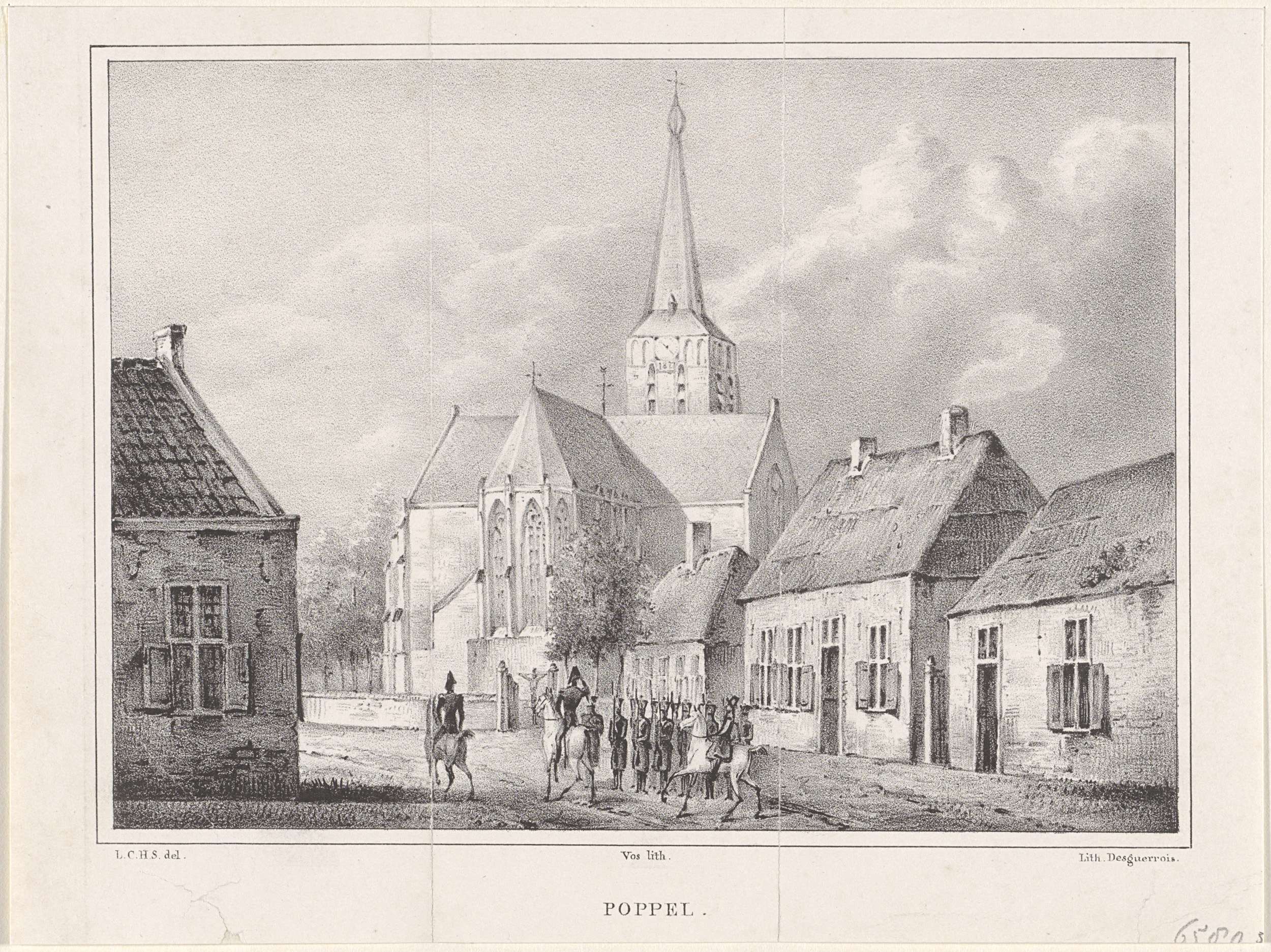 Gezicht op het wachthuis van de vrijwillige schutterij te Poppel, destijds gelegen in Noord-Brabant. Onderdeel van een serie van vijf voorstellingen van de wachthuizen van de Nederlandse schutterij in Noord-Brabant in 1830-1831.