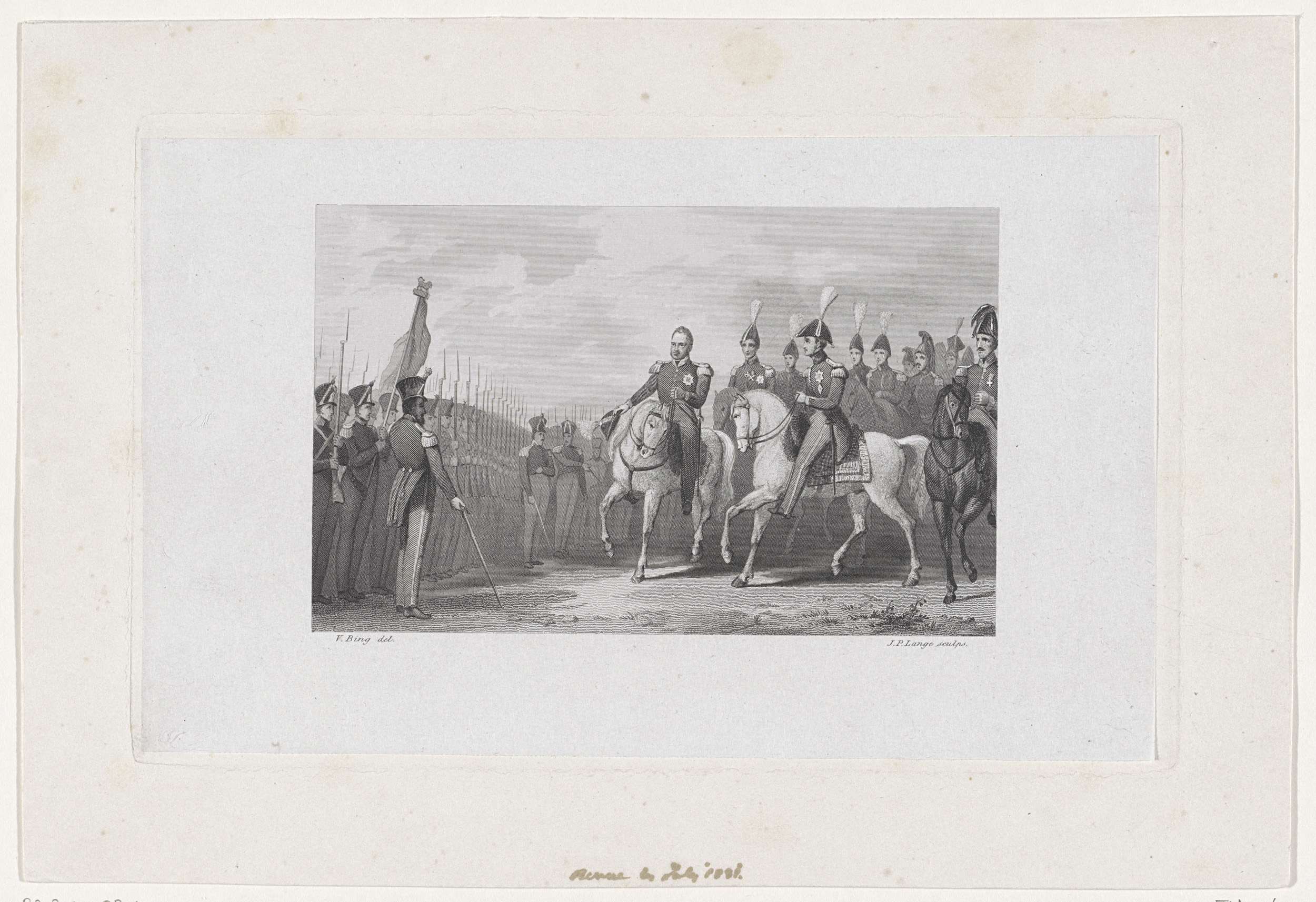Koning Willem I inspecteert de Nederlandse troepen tijdens zijn bezoek aan het legerkamp bij Rijen, 23 juli 1831.