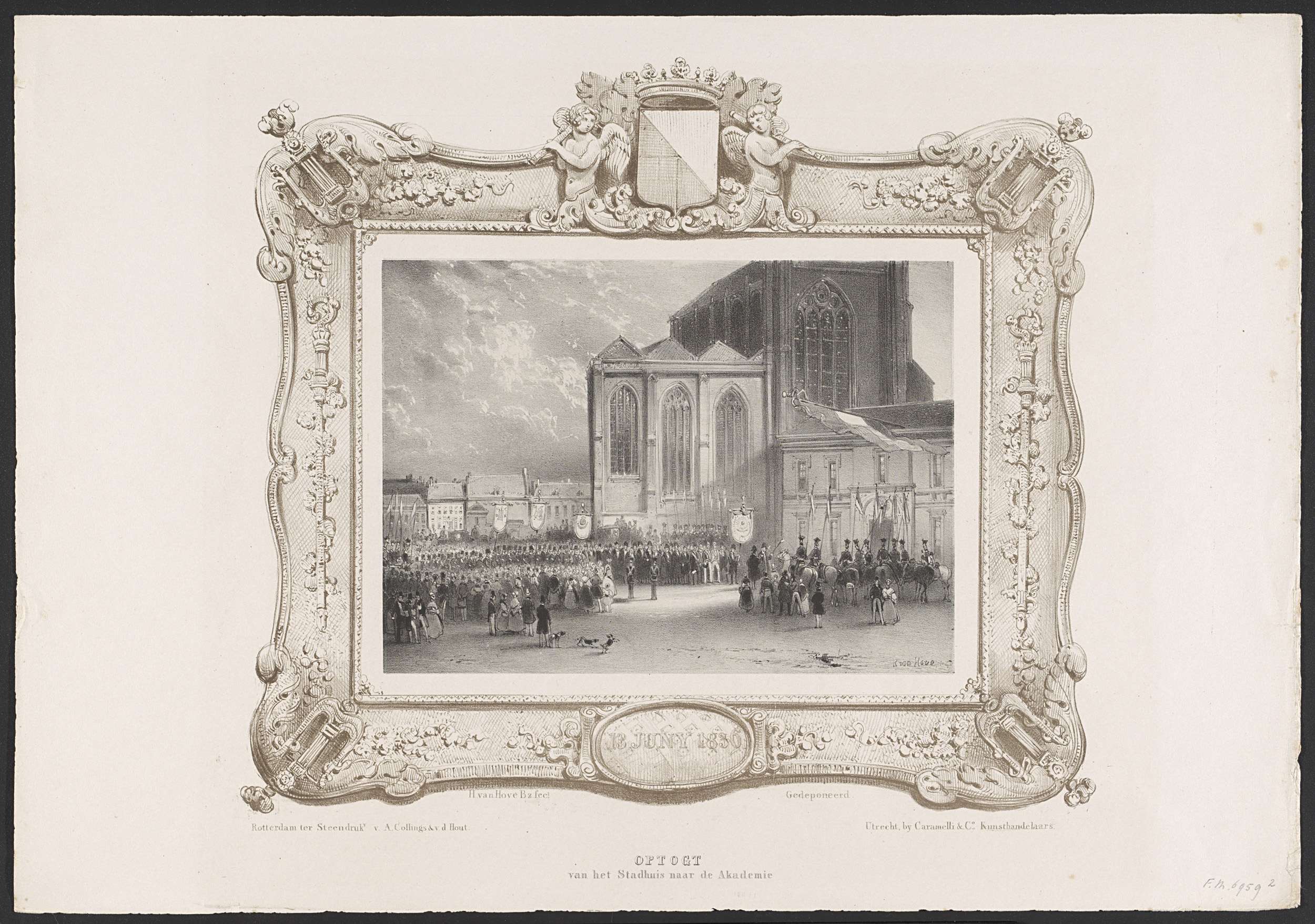 Optocht van het Stadhuis naar het Academiegebouw, 1836