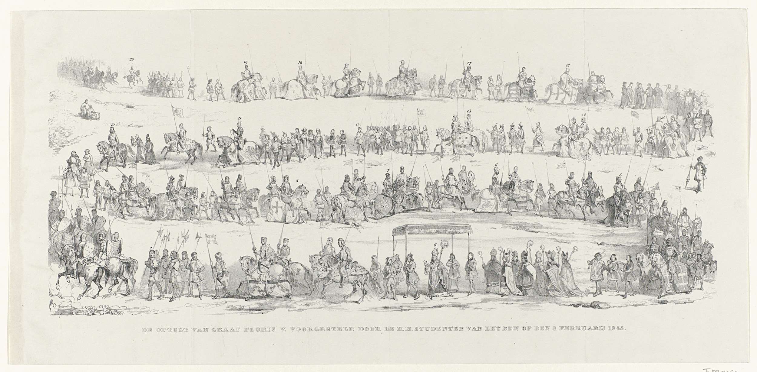 De Optogt van Graaf Floris V. voorgesteld door de H.H. Studenten van Leyden op den 8 Februarij 1845