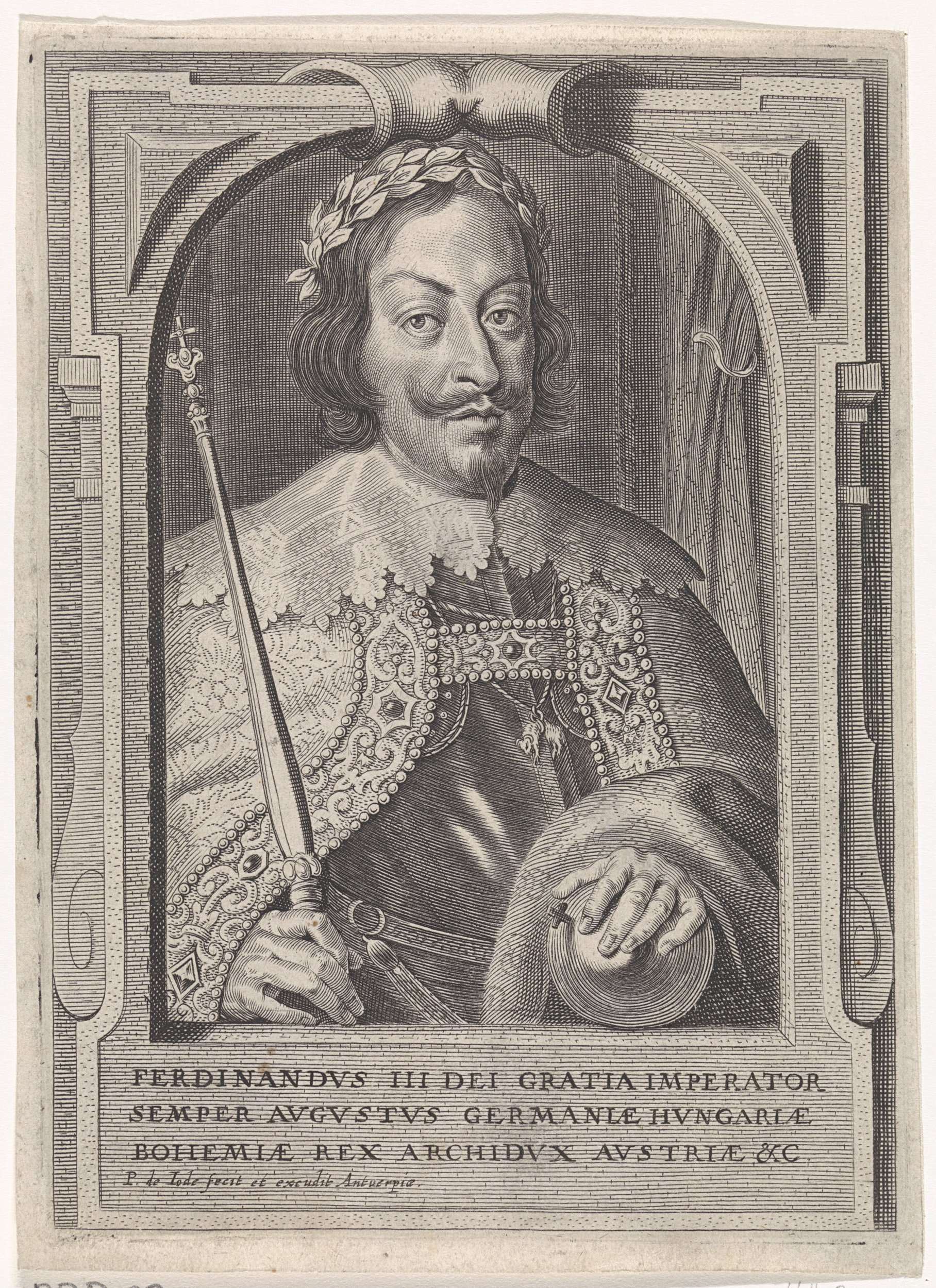 Portret van Ferdinand III, ten halven lijve. Hij draagt een rijkversierde mantel en is gekroond met een lauwerkrans. Hij draagt een ketting met een hanger van de Orde van het Gulden Vlies. In zijn rechterhand houdt hij een scepter en zijn linkerhand rust op een rijksappel. Het portret is gevat in een boogvormige omlijsting. In ...