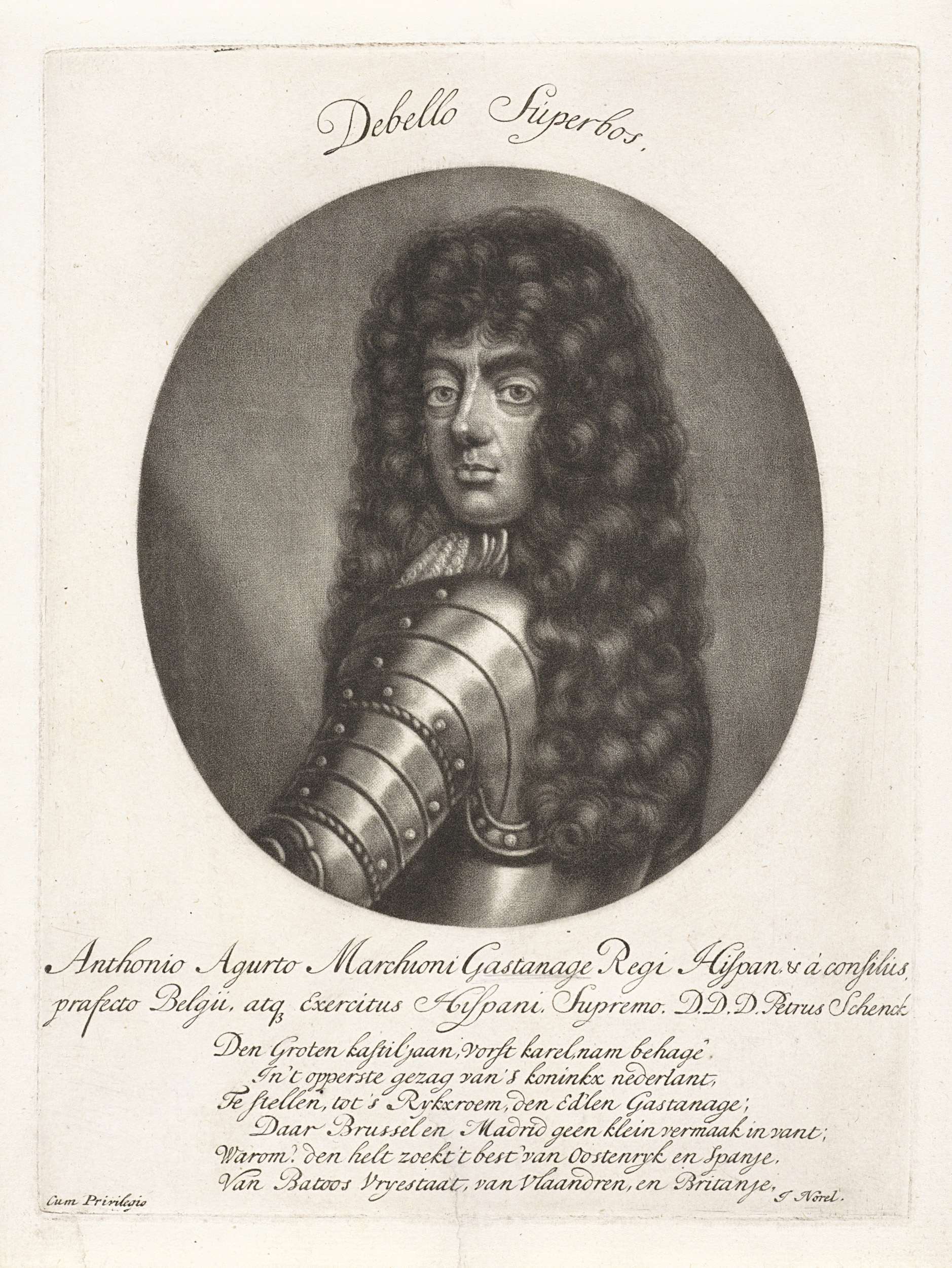 Francisco Antonio de Agurto, markies van Gastañaga. Hij draagt een harnas en een pruik. De Spaanse markies was gedurende enkele jaren onderkoning en landvoogd van de Zuidelijke Nederlanden.
