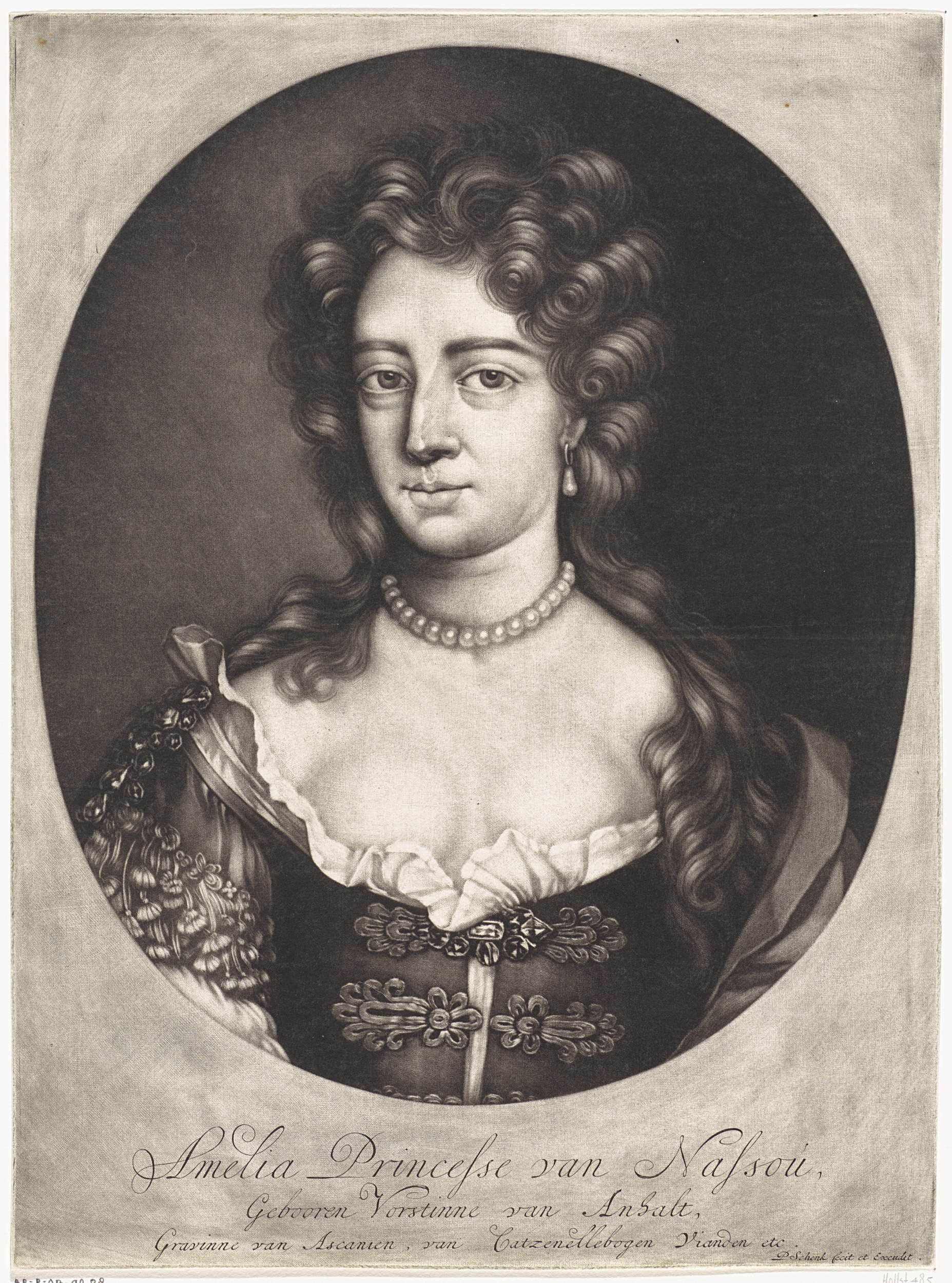 Henriëtta Amalia, prinses van Anhalt-Dessau, echtgenote van Hendrick Casimir II. Ze draagt een parelsnoer.