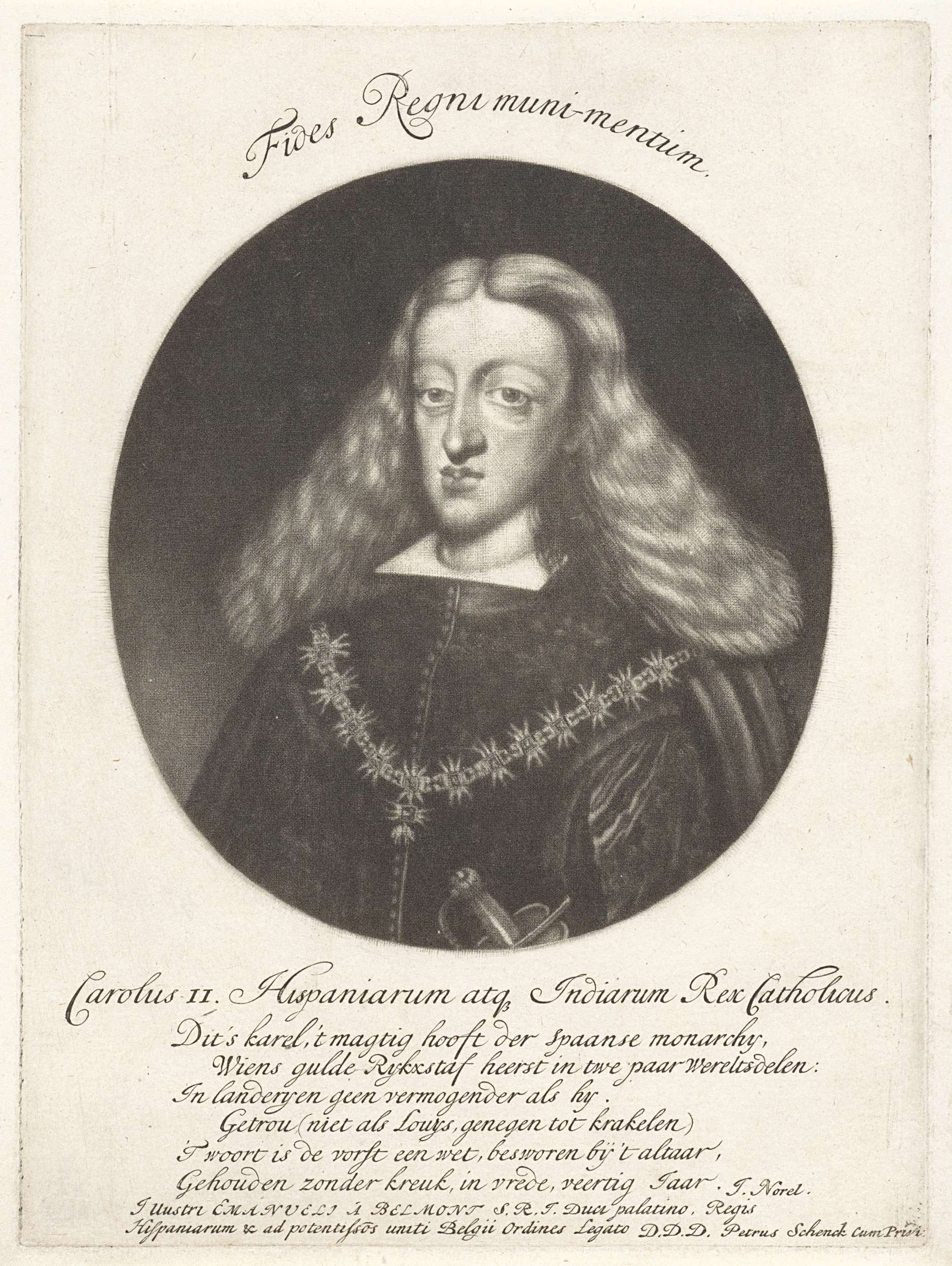 Karel II, koning van Spanje op jonge leeftijd, met om de hals een keten met het ordeteken van het Gulden Vlies.