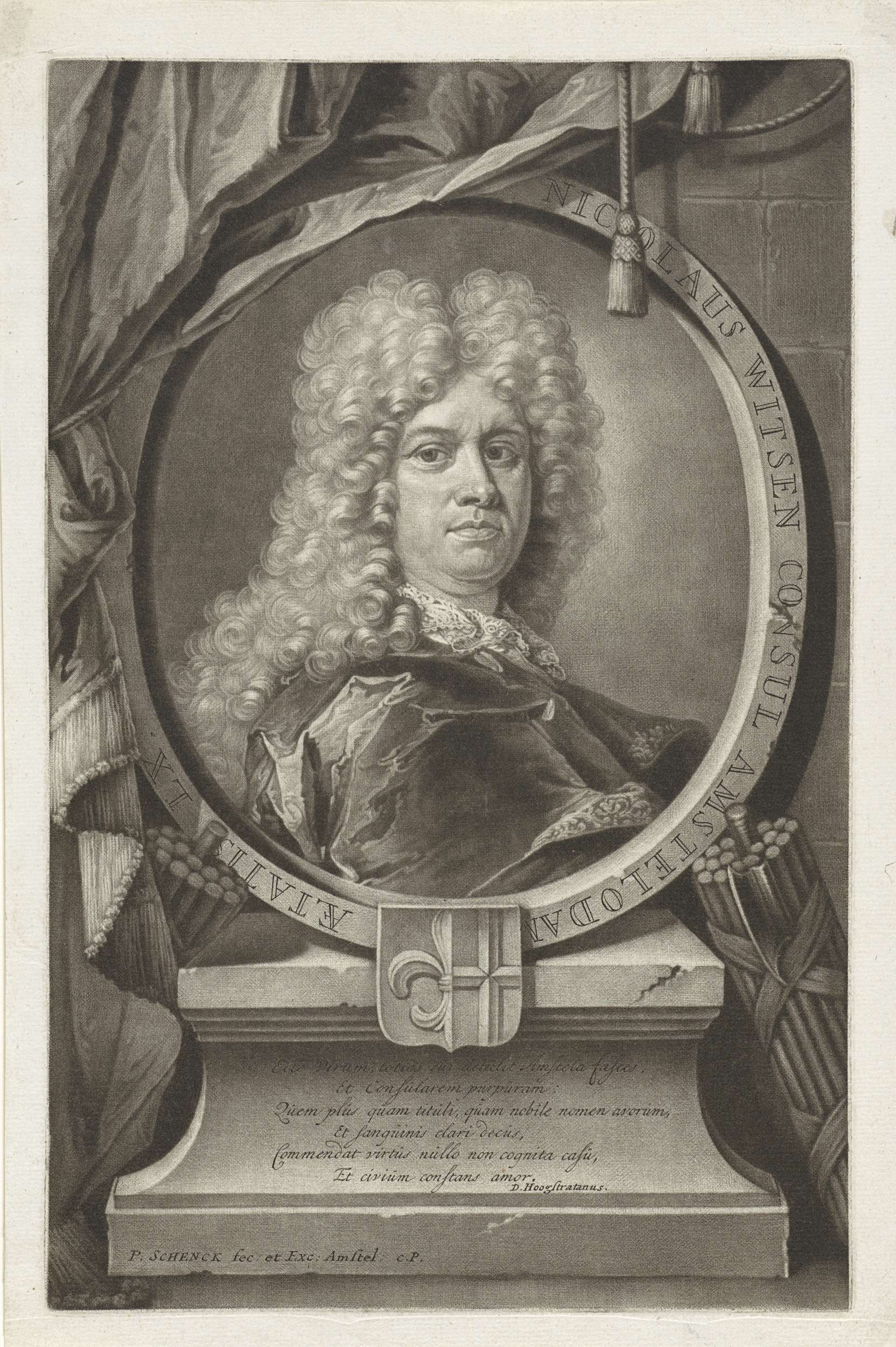 De prentmaker, cartograaf en burgemeester van Amsterdam, Nicolaes Cornelisz. Witsen op 60-jarige leeftijd.