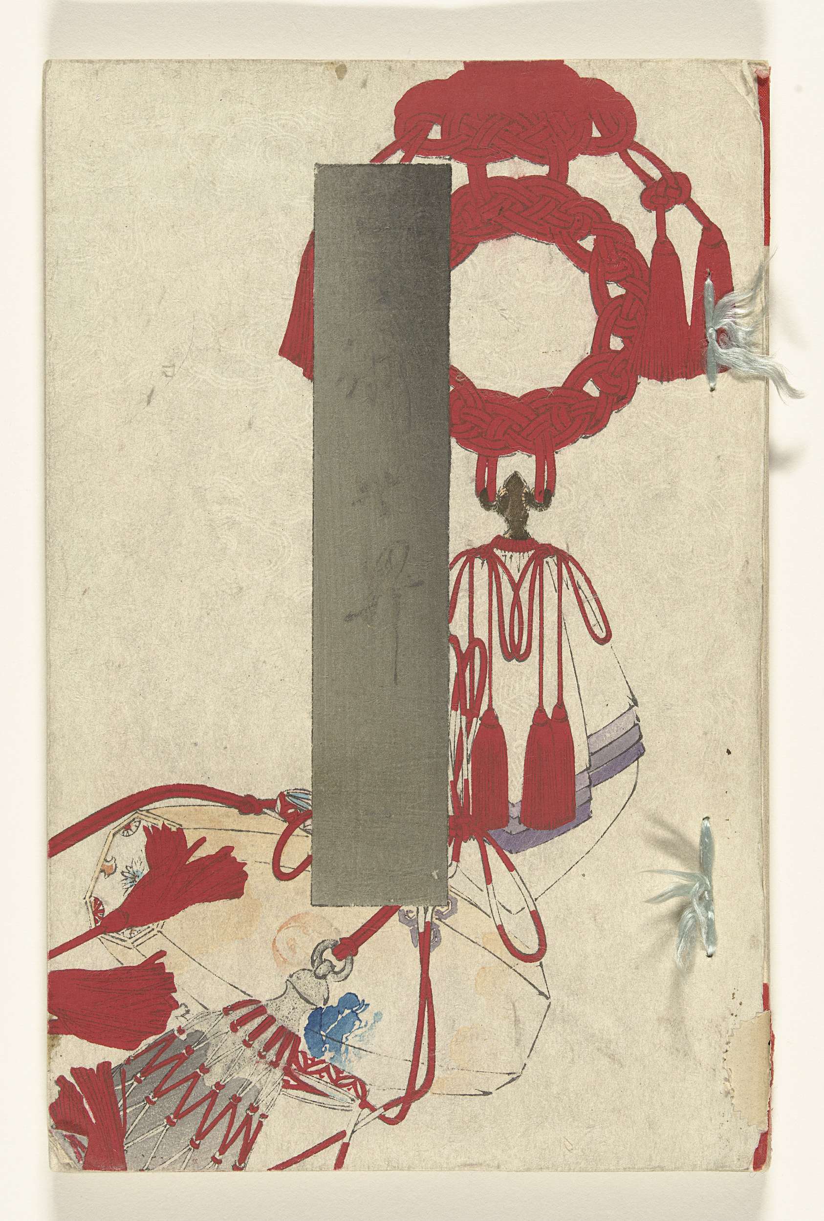 Witte kaft met afbeelding van attribuut met rode kwastjes en grijze titelstrook; binnenkant kaft, inhoudsopgave; 22 bladen, genummerd: 1-3, tekst; 1-19, afbeeldingen van personen, dieren en landschappen en enkele pagina`s tekst; binnenkant kaft, colofon.