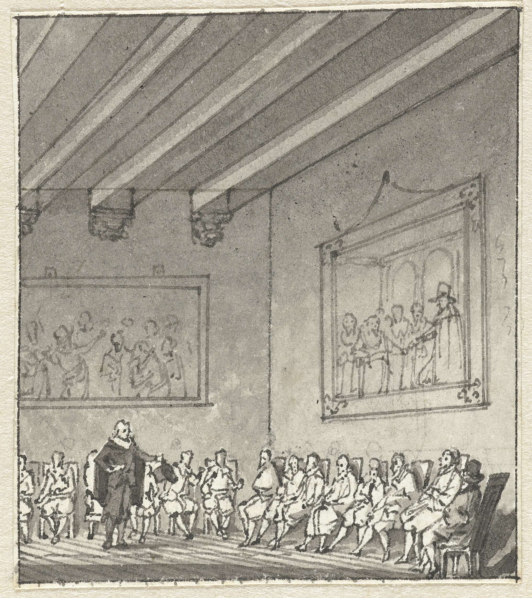 Bijeenkomst in een zaal, waarschijnlijk het verbond der edelen op het kasteel van Hendrik van Brederode te Vianen, 1565.
