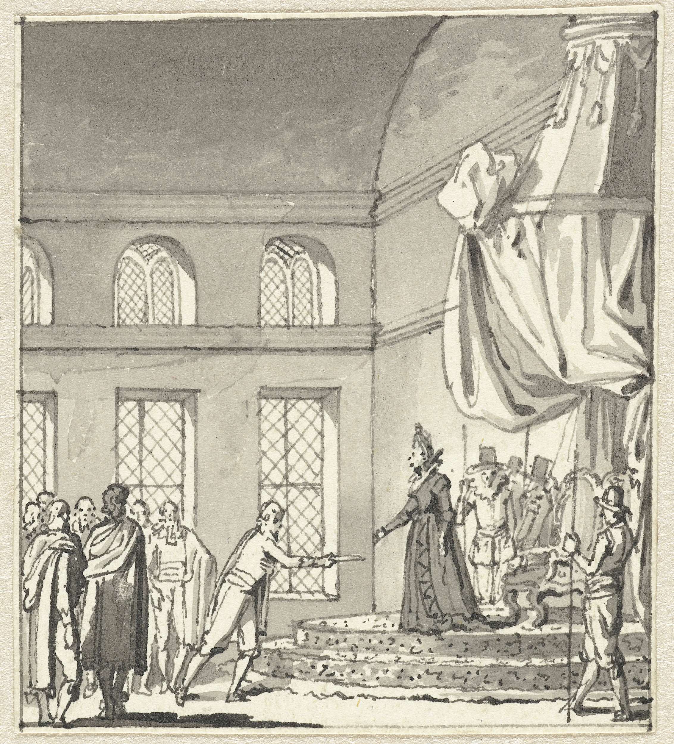 Het aanbieden van het Smeekschrift door het verbond der edelen aan de landvoogdes, de hertogin van Parma, in het paleis te Brussel 5 april 1566.