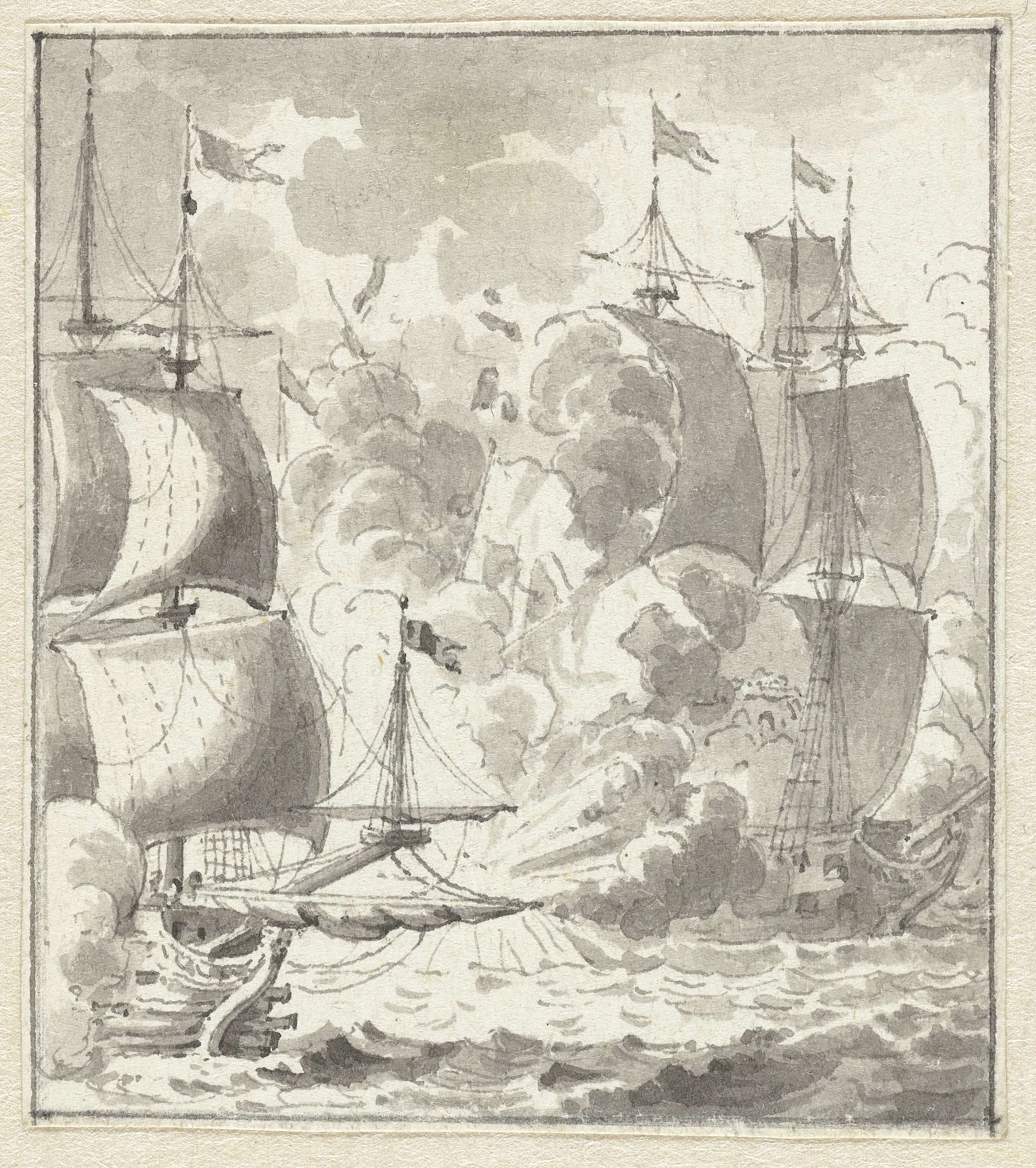 Een zeeslag, waarschijnlijk de Vierdaagse Zeeslag, 11-14 juni 1666.