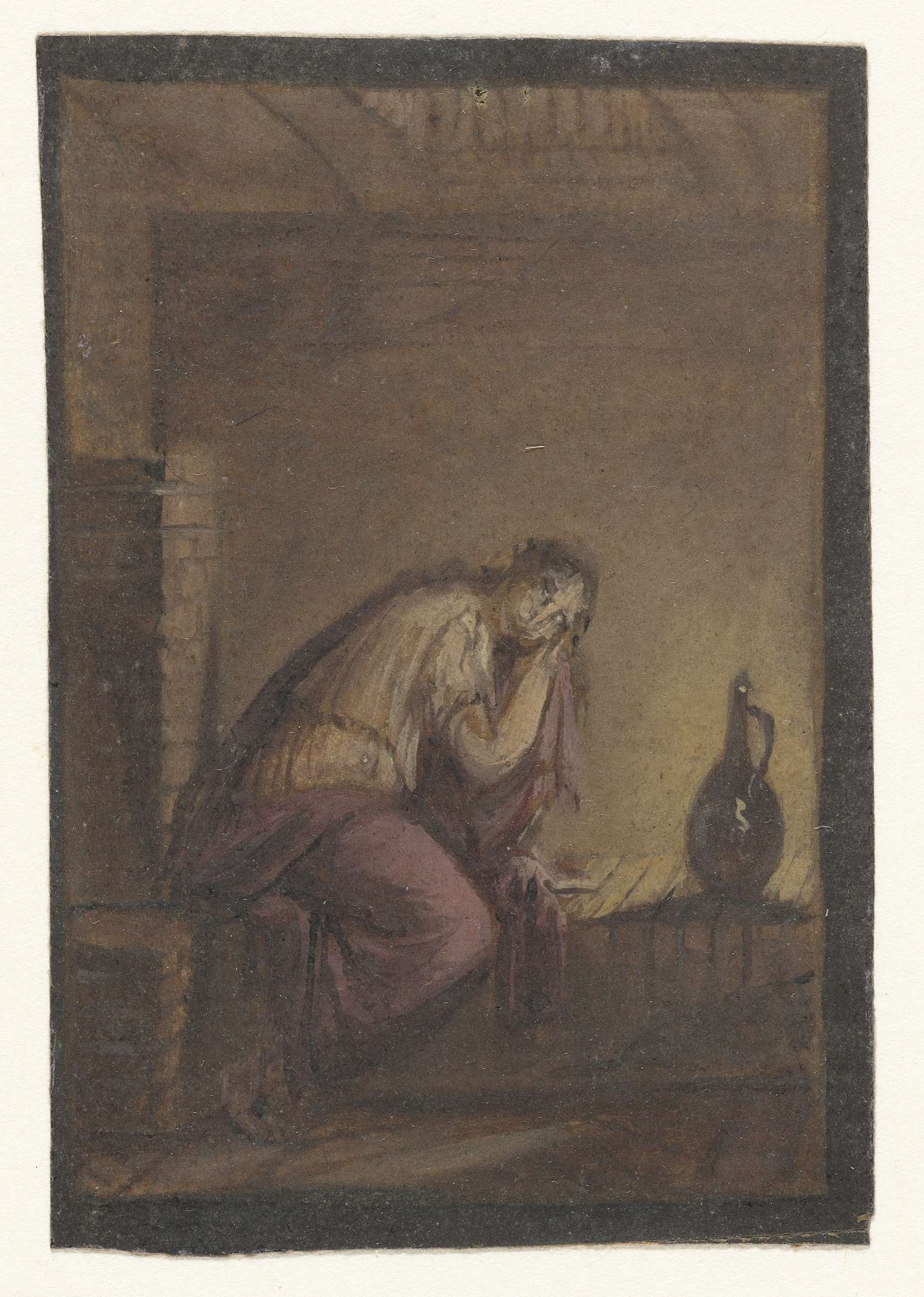 Zittende vrouw met kruik