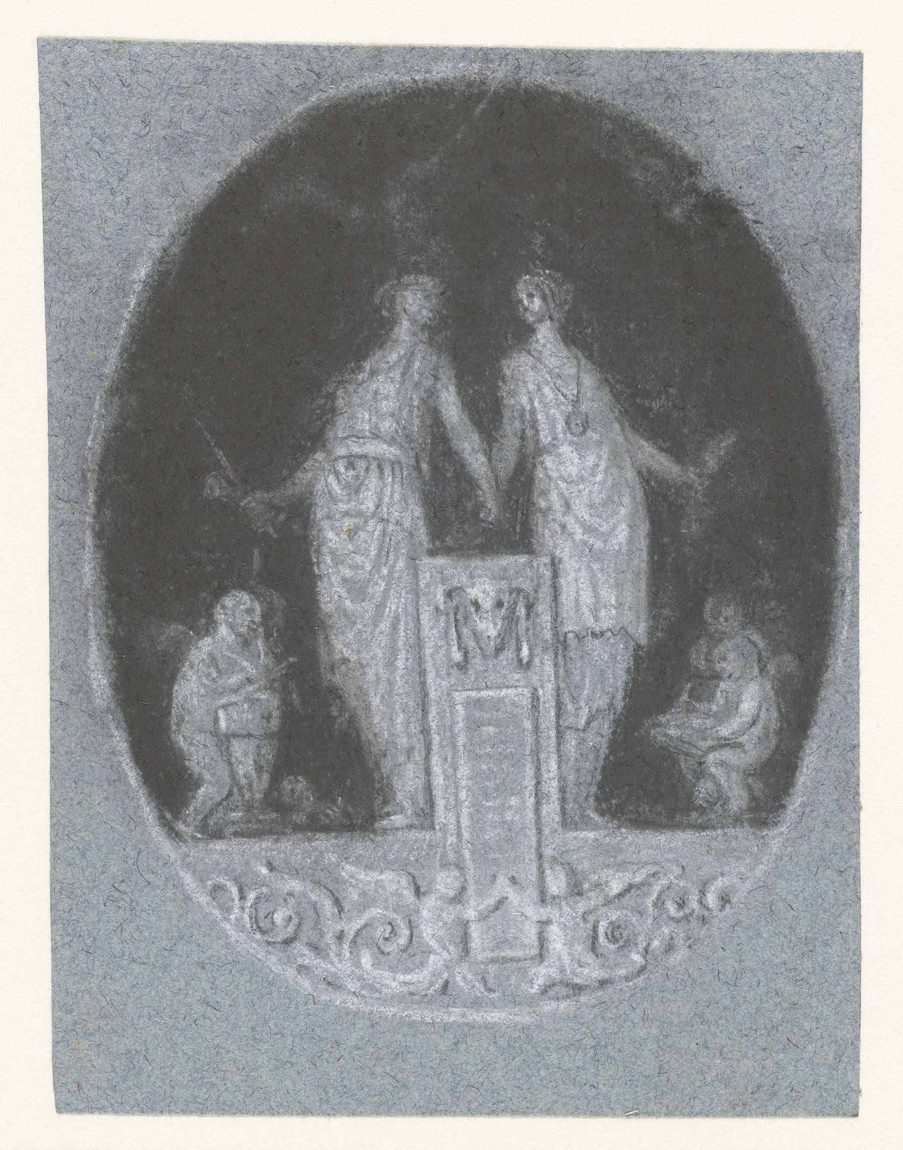 Ornament met twee staande vrouwelijke figuren