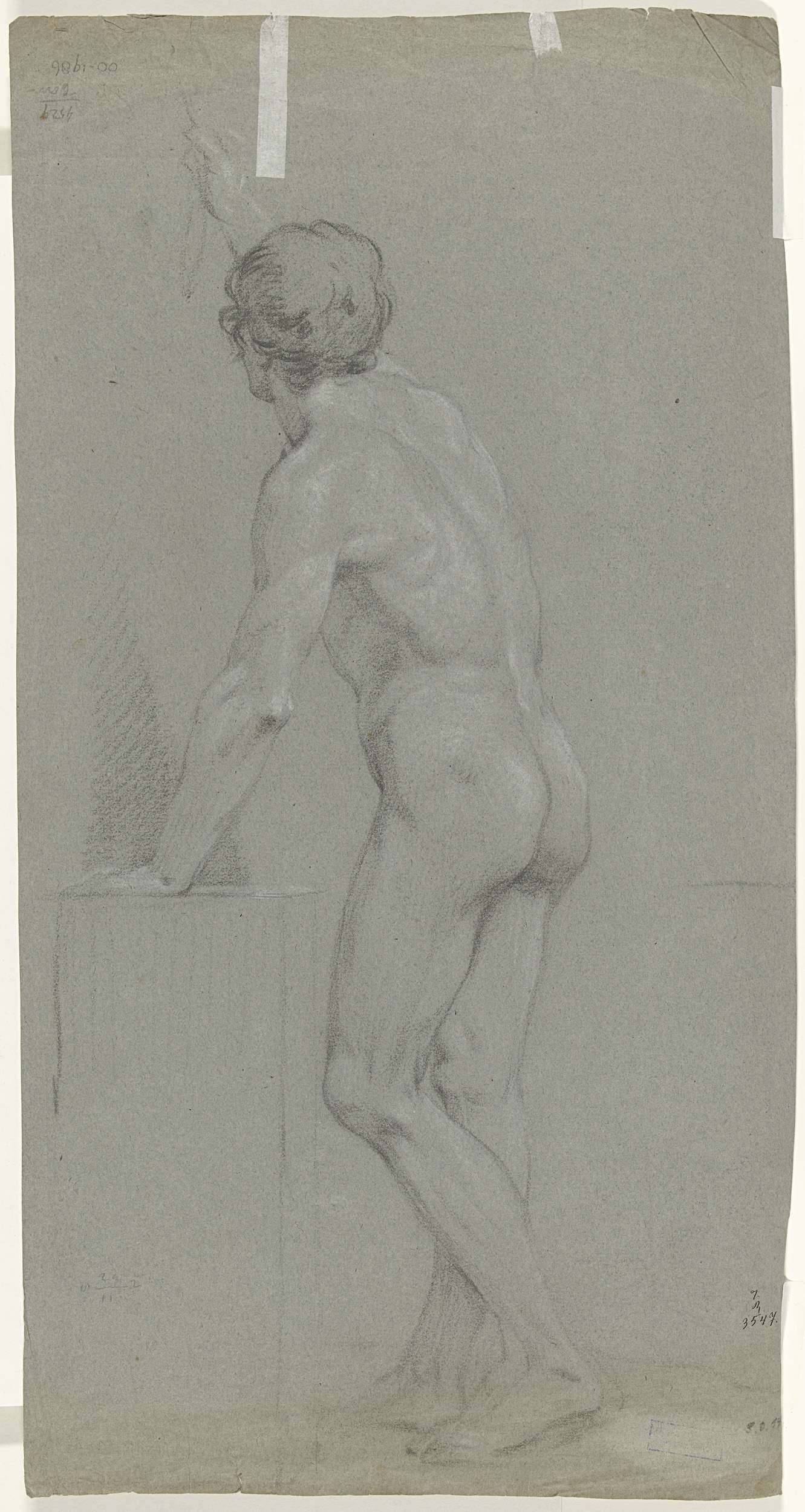 Staand mannelijk naakt, op de rug gezien naar links