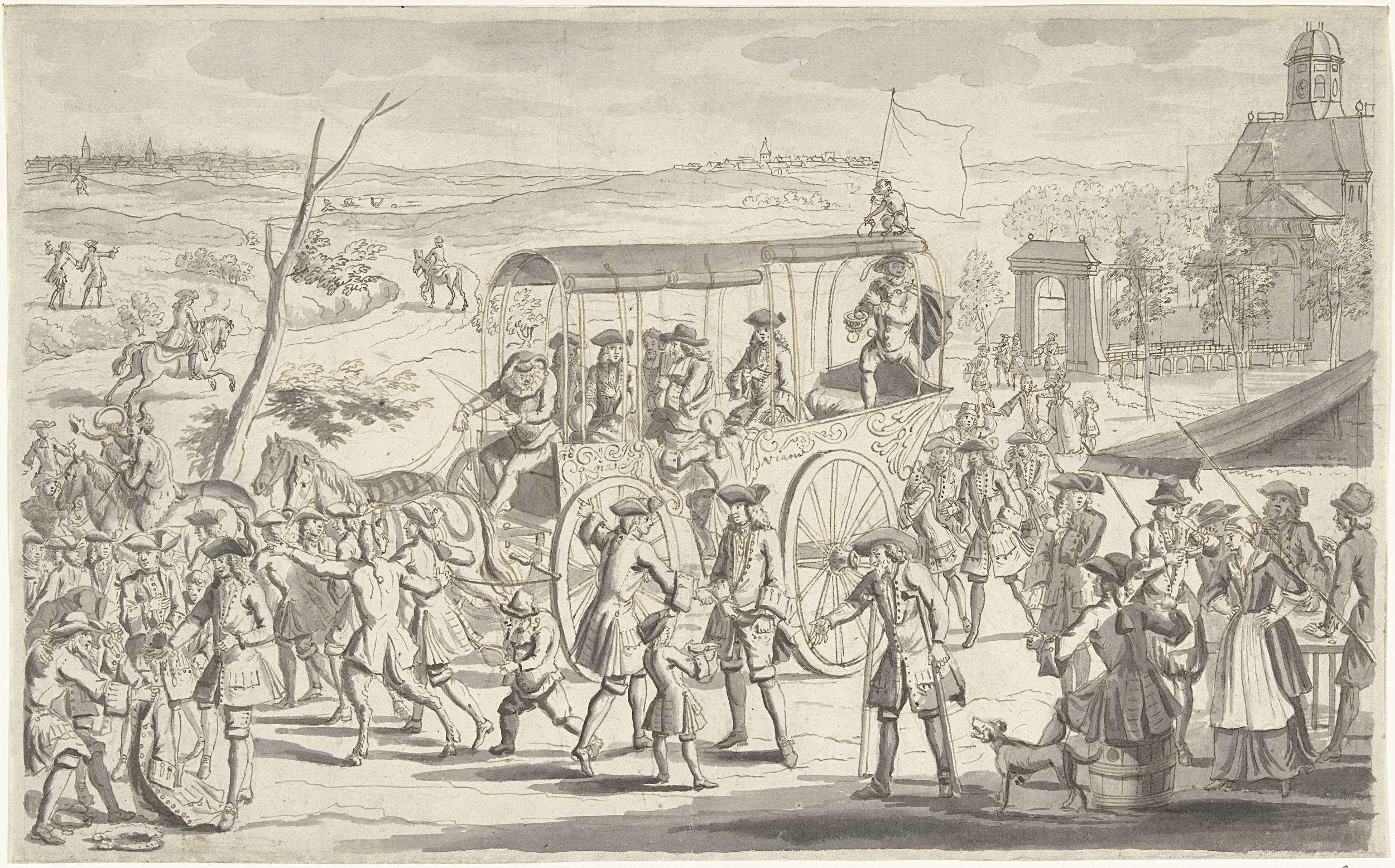 Ontwerptekening voor de prent van de Actionisten onderweg naar Vianen, 1720