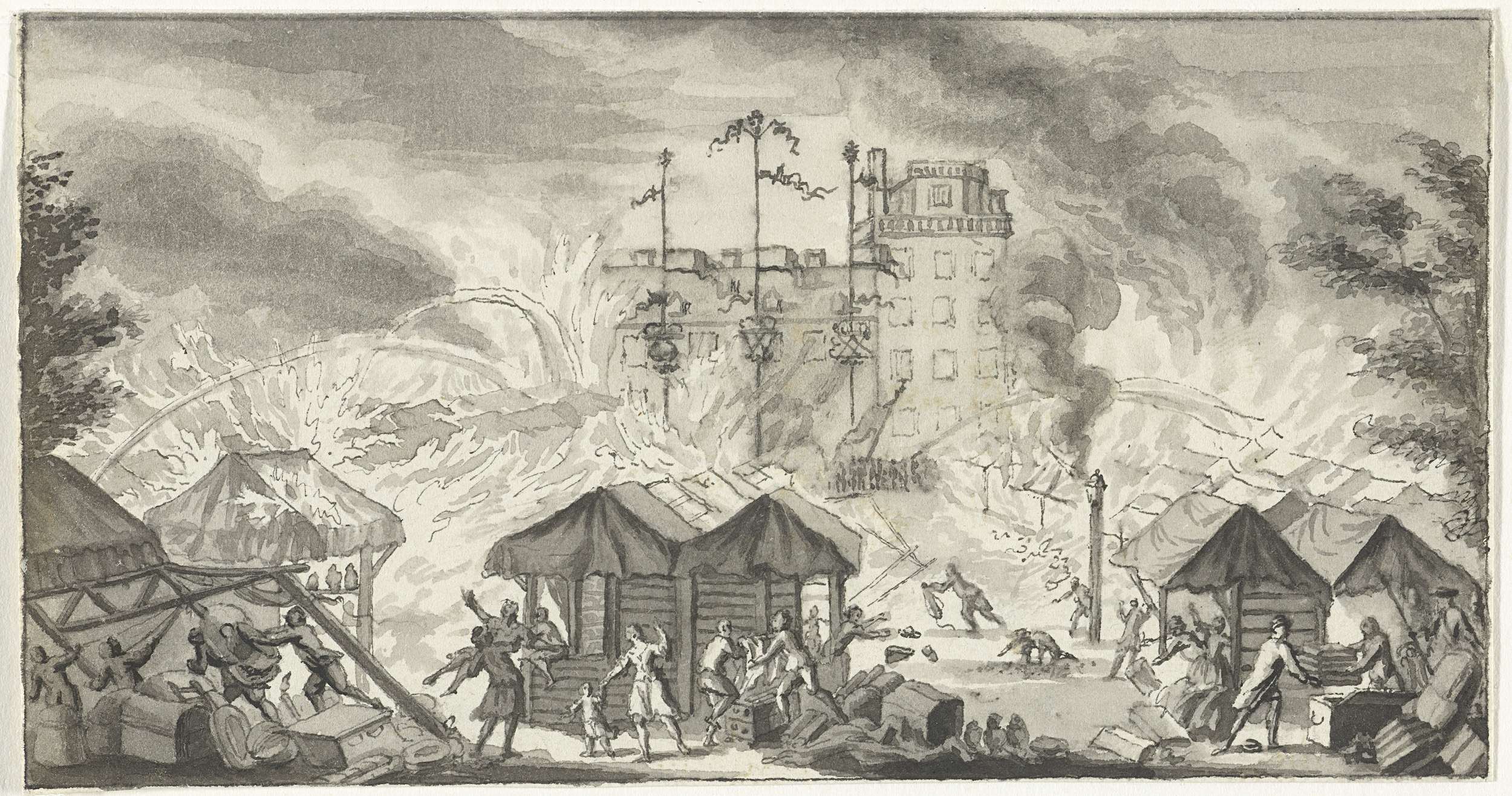 Brand in de kermiskramen op het Buitenhof te Den Haag, 1758