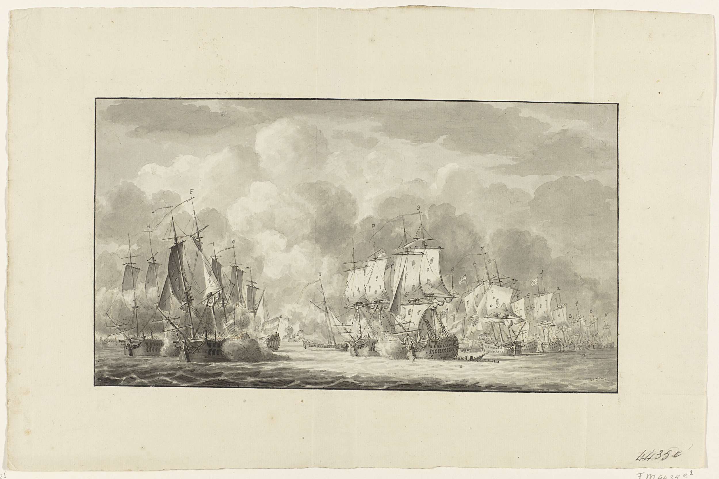 De Nederlandse en Engelse schepen tijdens de zeeslag bij Doggersbank op 5 augustus 1781 tussen de Nederlandse vloot onder schout-bij-nacht Johan Zoutman en de Engelse vloot onder vice-admiraal Hyde Parker.