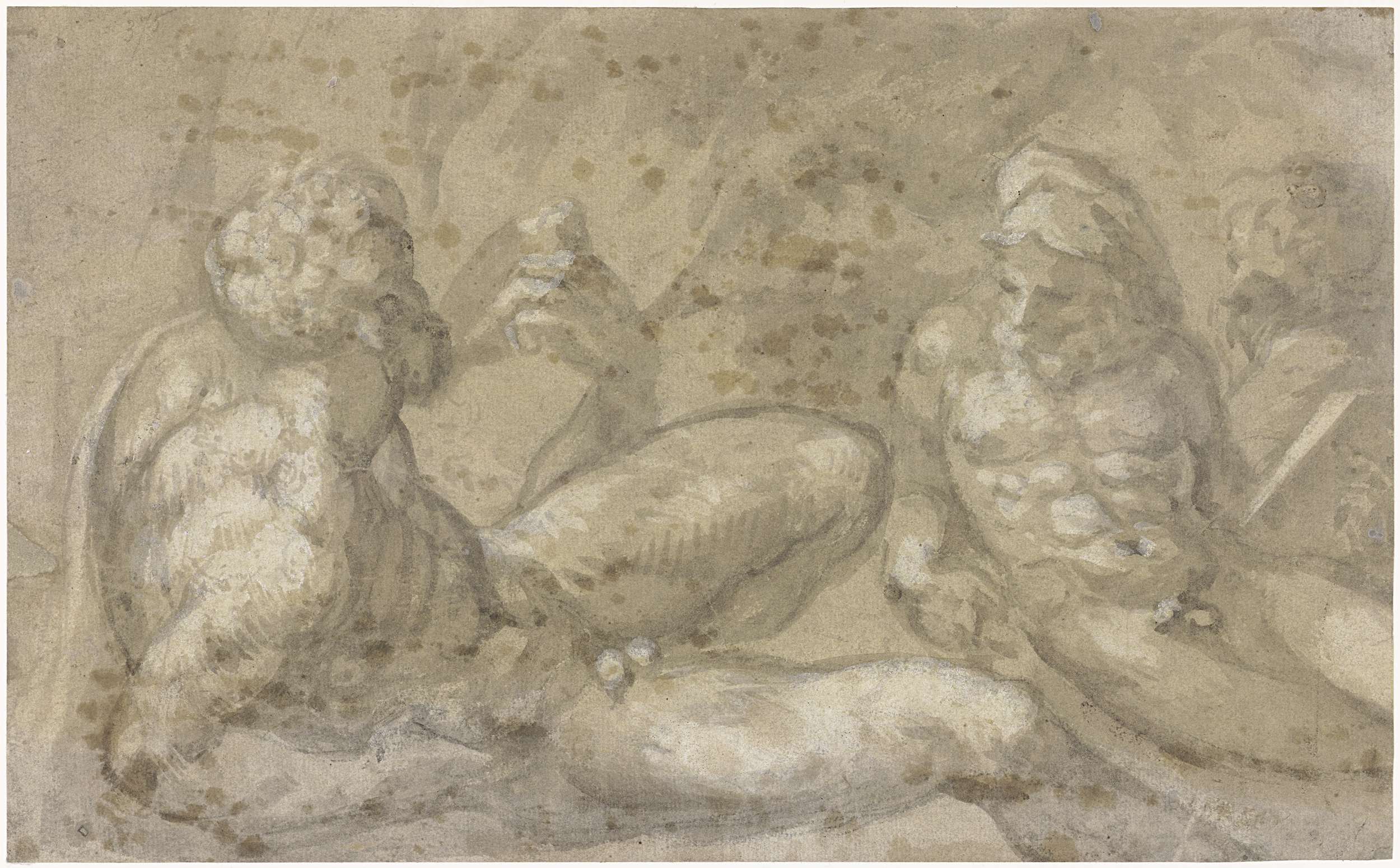 Drie liggende naakte mannen (riviergoden?)