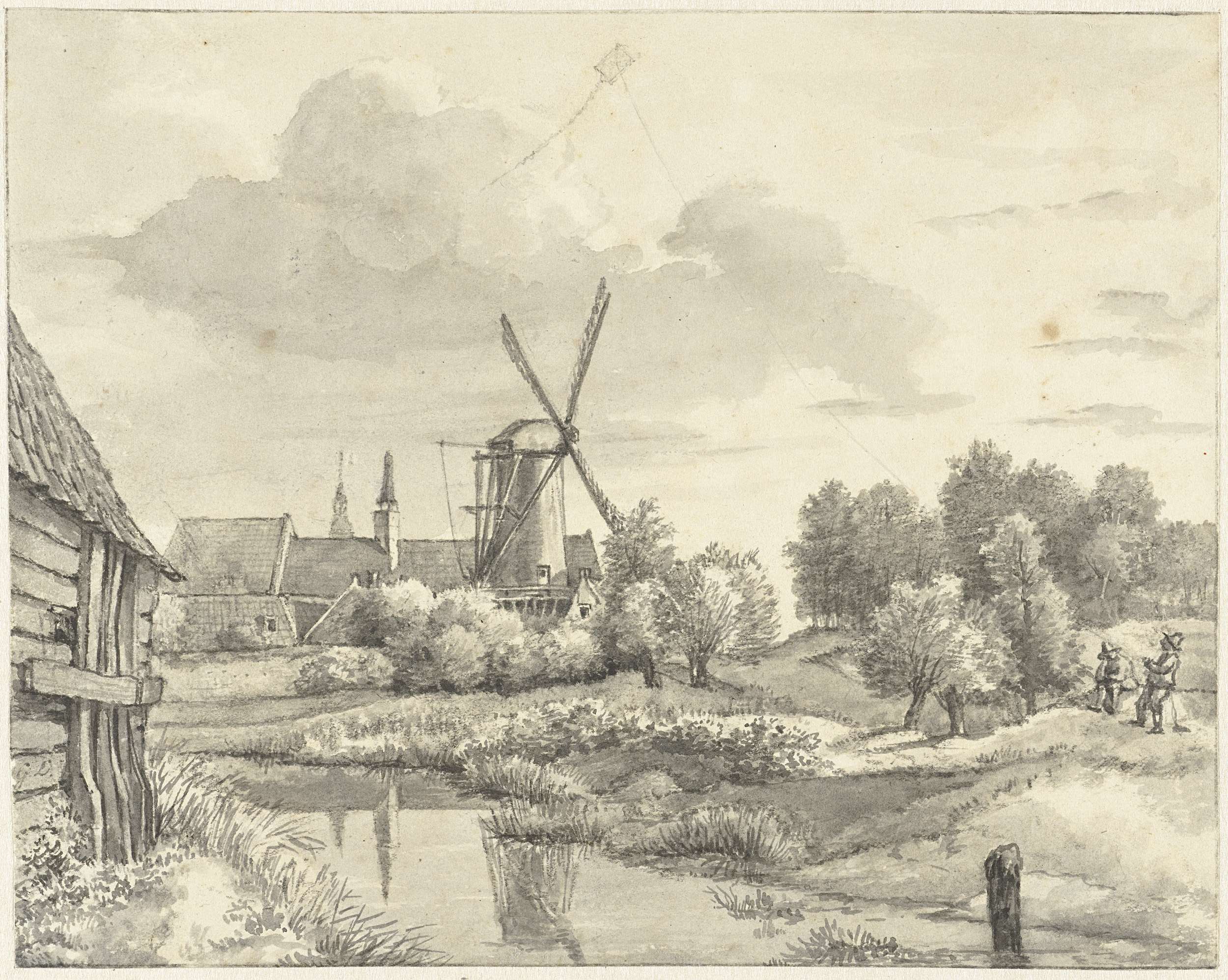 Twee jongens met een vlieger bij de Wal van Haarlem